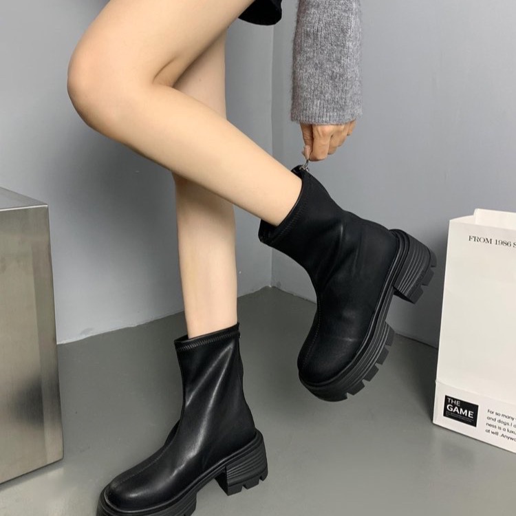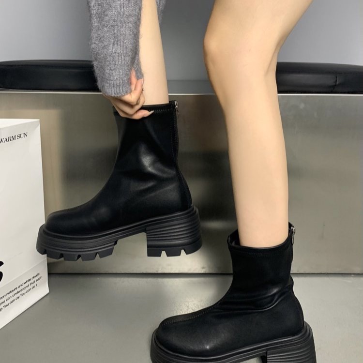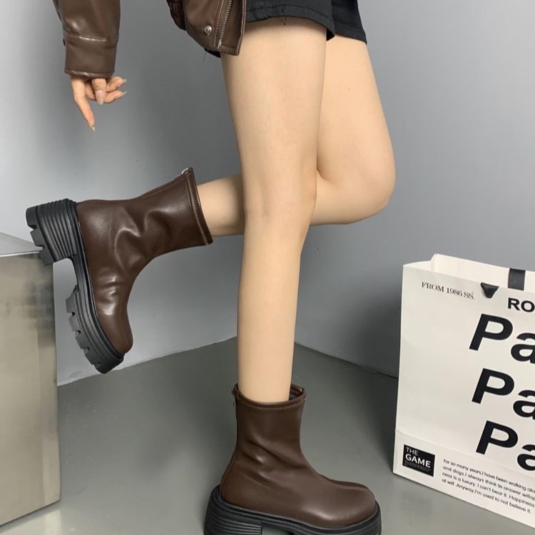 화이트 부츠 여성 마틴 부츠 여성 2024 새 가을 한국 스타일 작은 부드러운 가죽 두꺼운 하단 짧은 부츠 여성 싱글 부츠스토어 가기