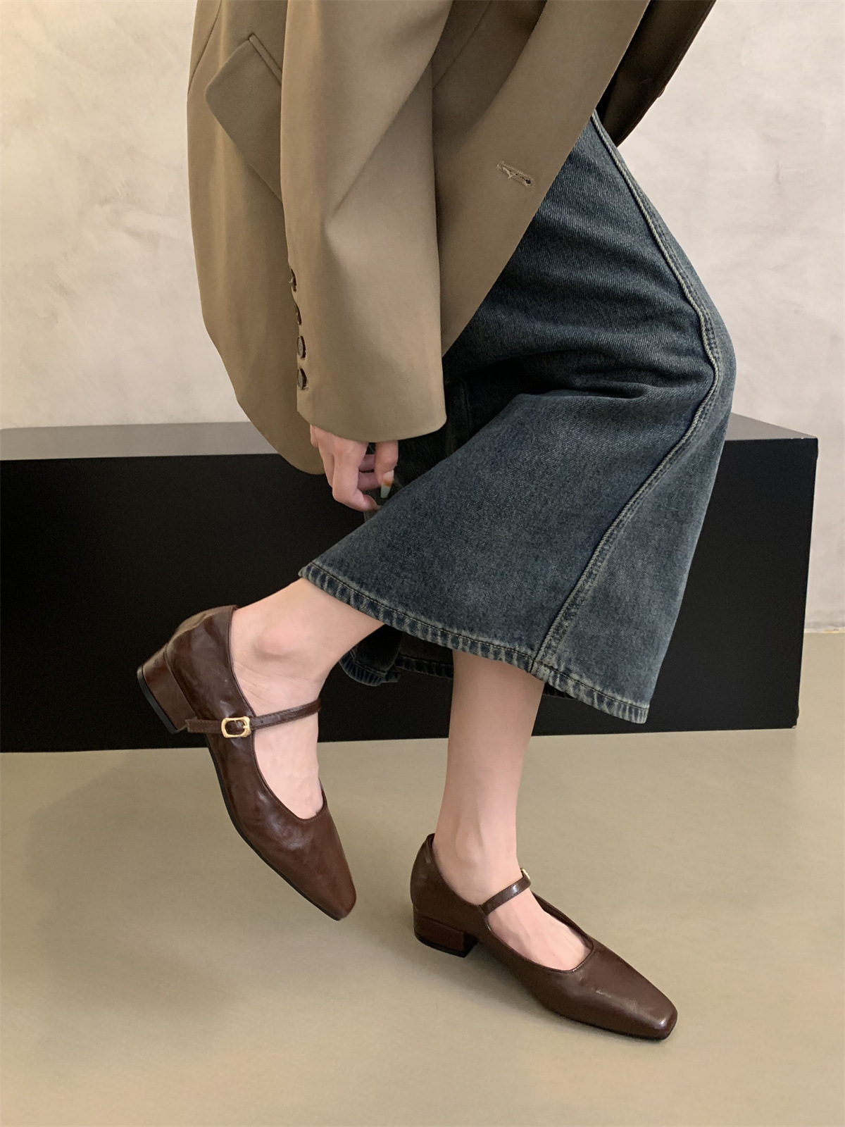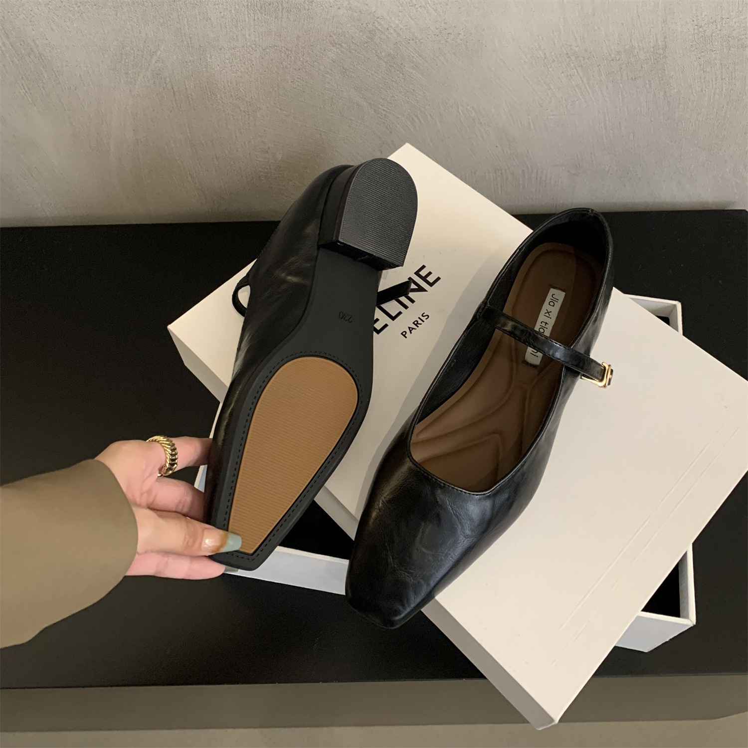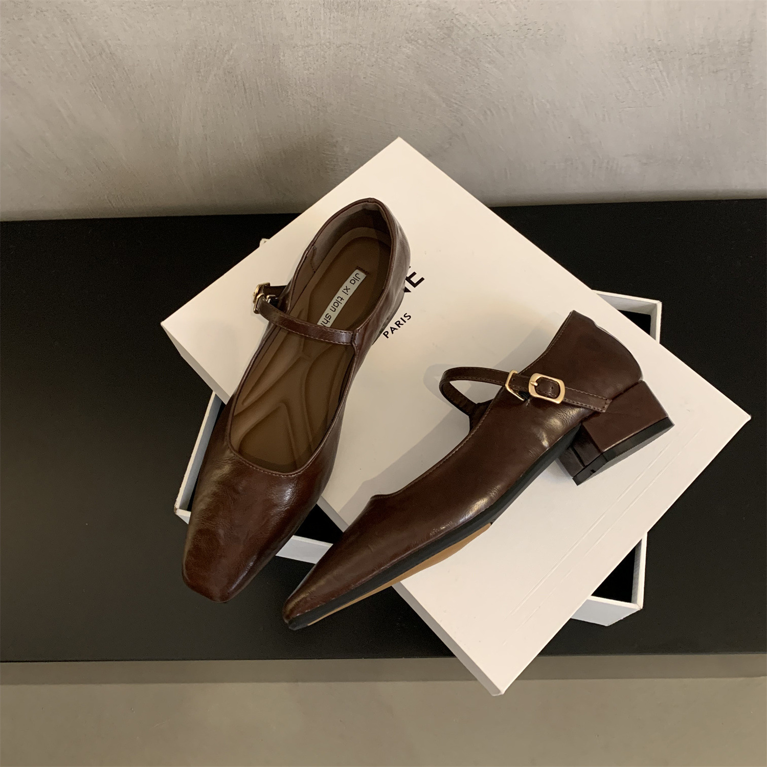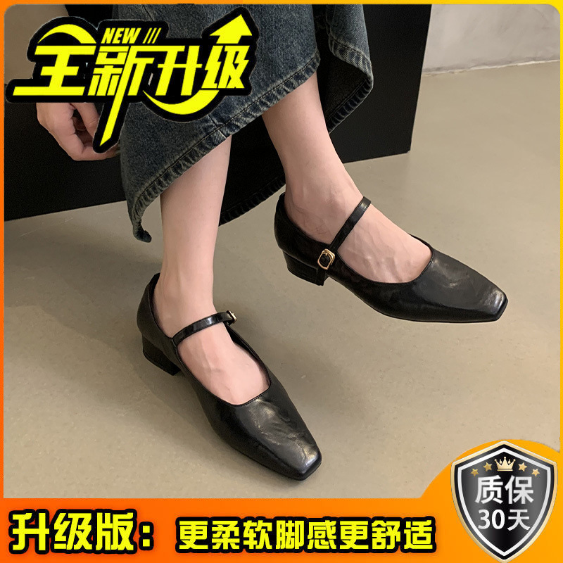 프렌치 스타일의 여성스러운 분위기의 여성용 싱글 슈즈 2025년 신상 가을 한국 스타일 통근용 굽이 두꺼운 메리제인 가죽 신발스토어 가기