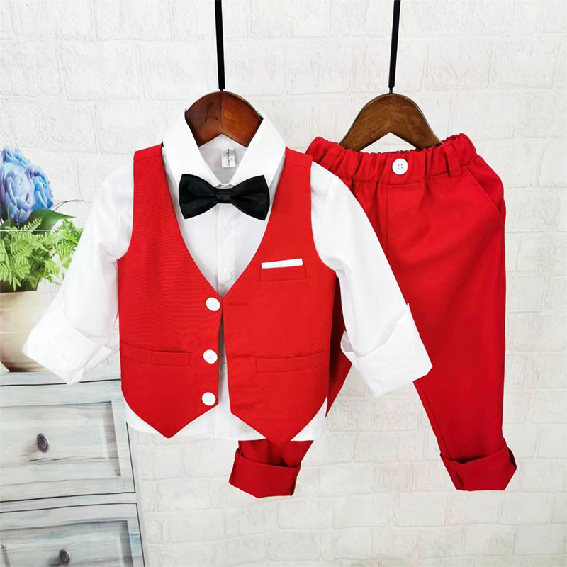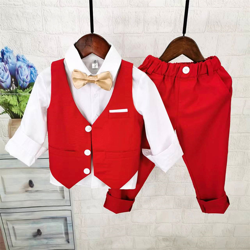 • 7088 빨간 조끼 정장 + 흰색 셔츠 (샴페인 나비 넥타이 포함)