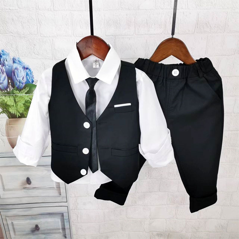 어린이 원피스 소년의 검은 조끼 세트 피아노 공연 세트 꽃 소년의 결혼식 세트 작은 호스트 봄과 가을스토어 가기