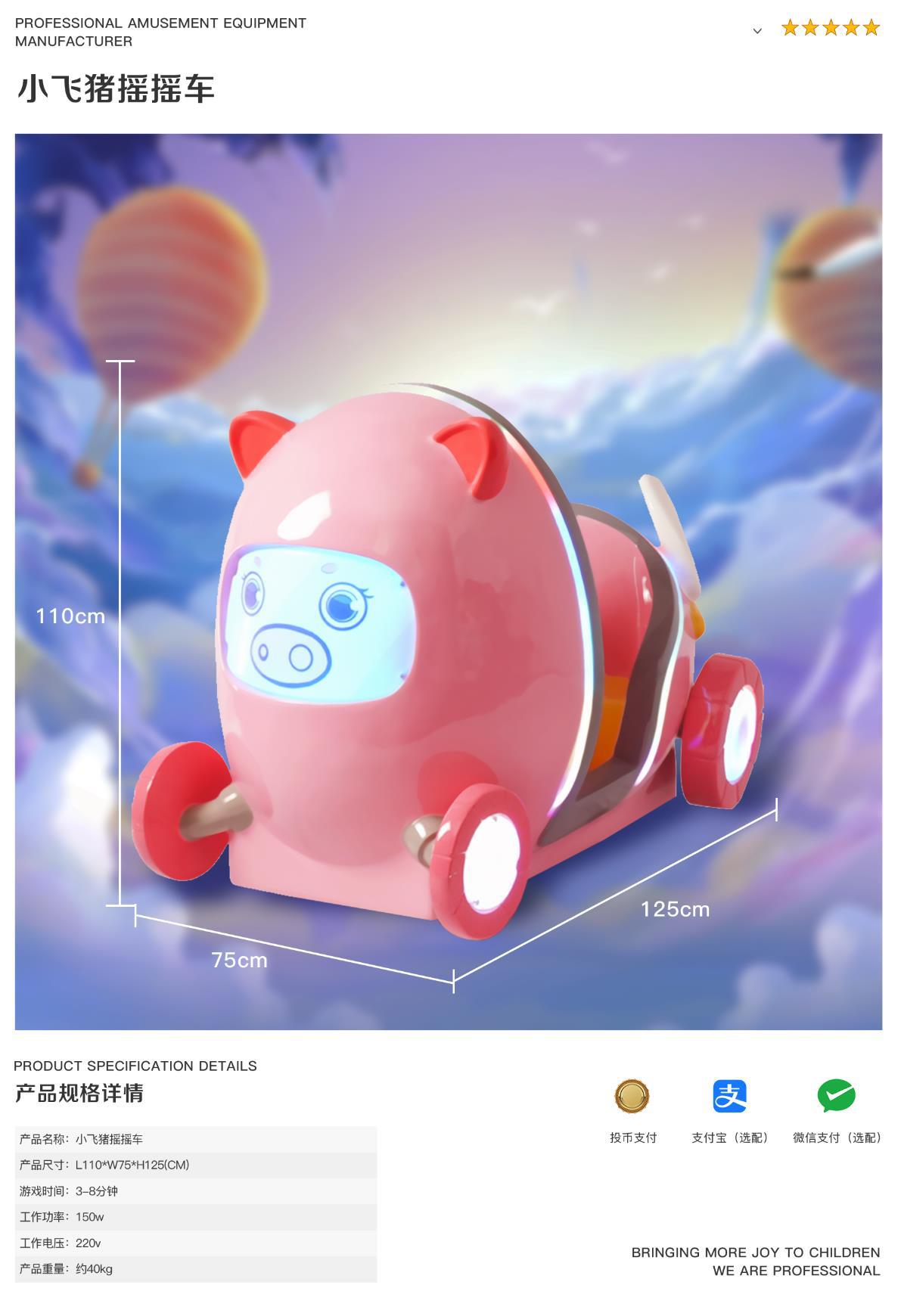 어린이 놀이 공원 쇼핑몰 비디오 게임 장비 멋진 조명 어린이 전기 동전으로 작동되는 작은 비행 돼지 유리 섬유 흔들리는 자동차스토어 가기
