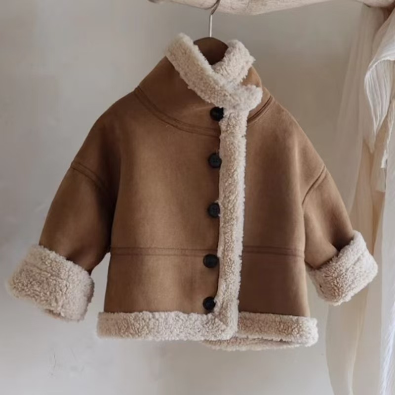 아동복 Ins 한국 스타일 겨울 새 재킷 유행 서양식 두꺼운 따뜻한 모방 가죽 벨벳 양모 새로운 재킷스토어 가기
