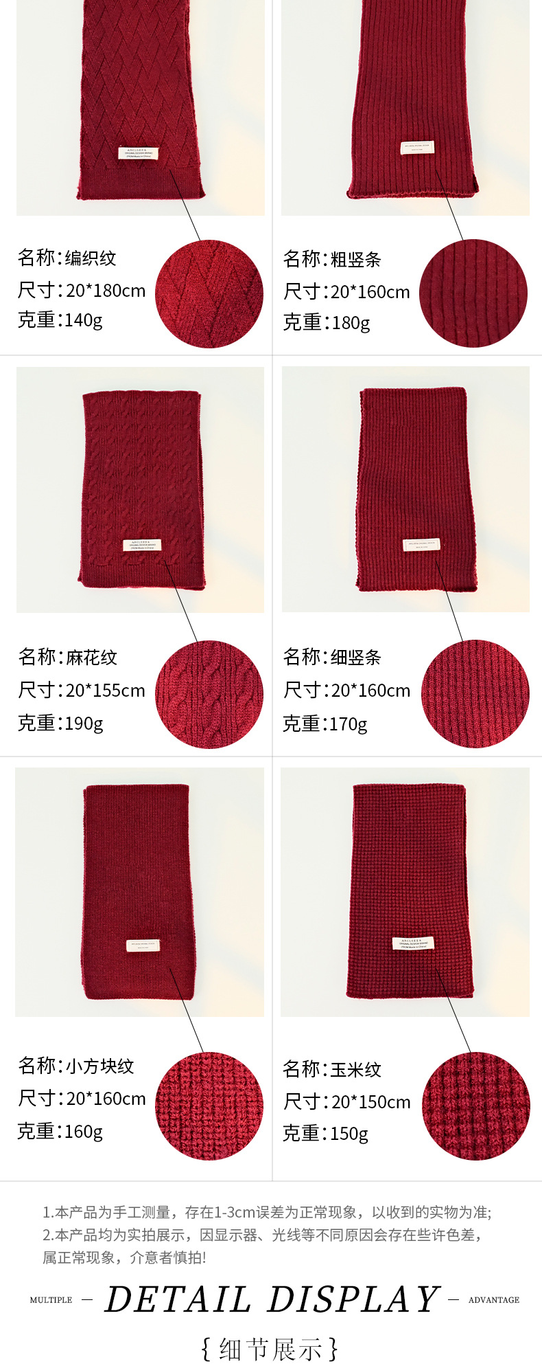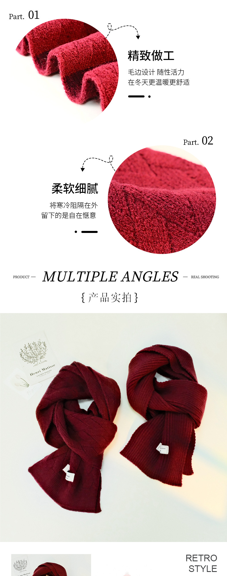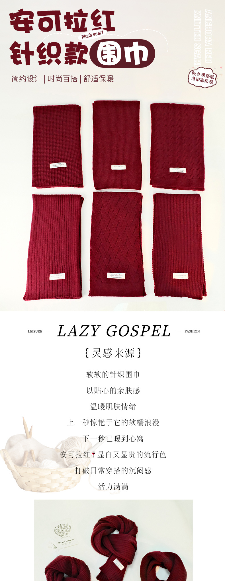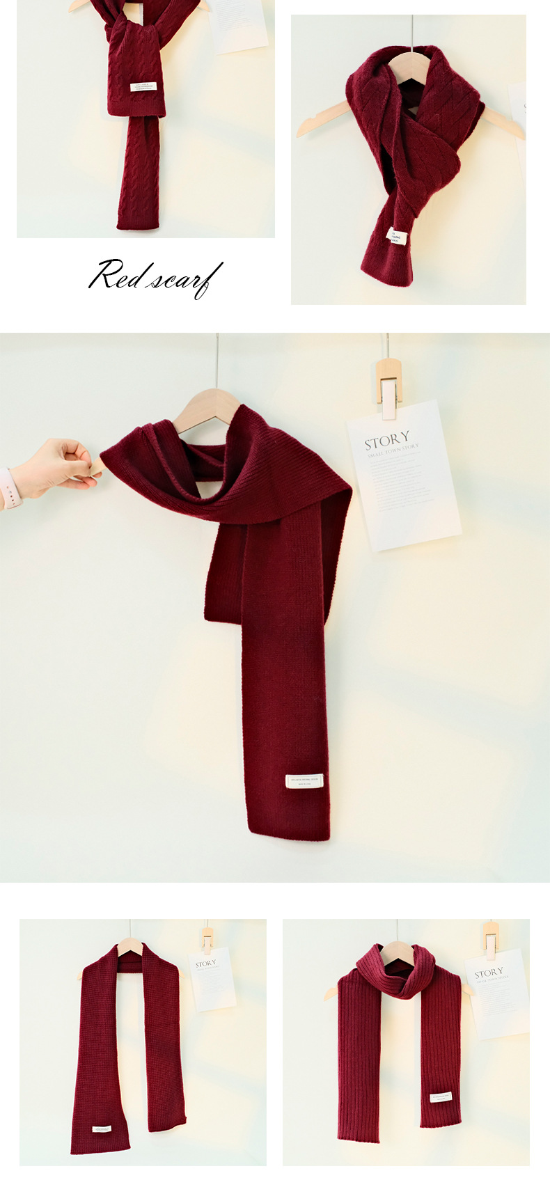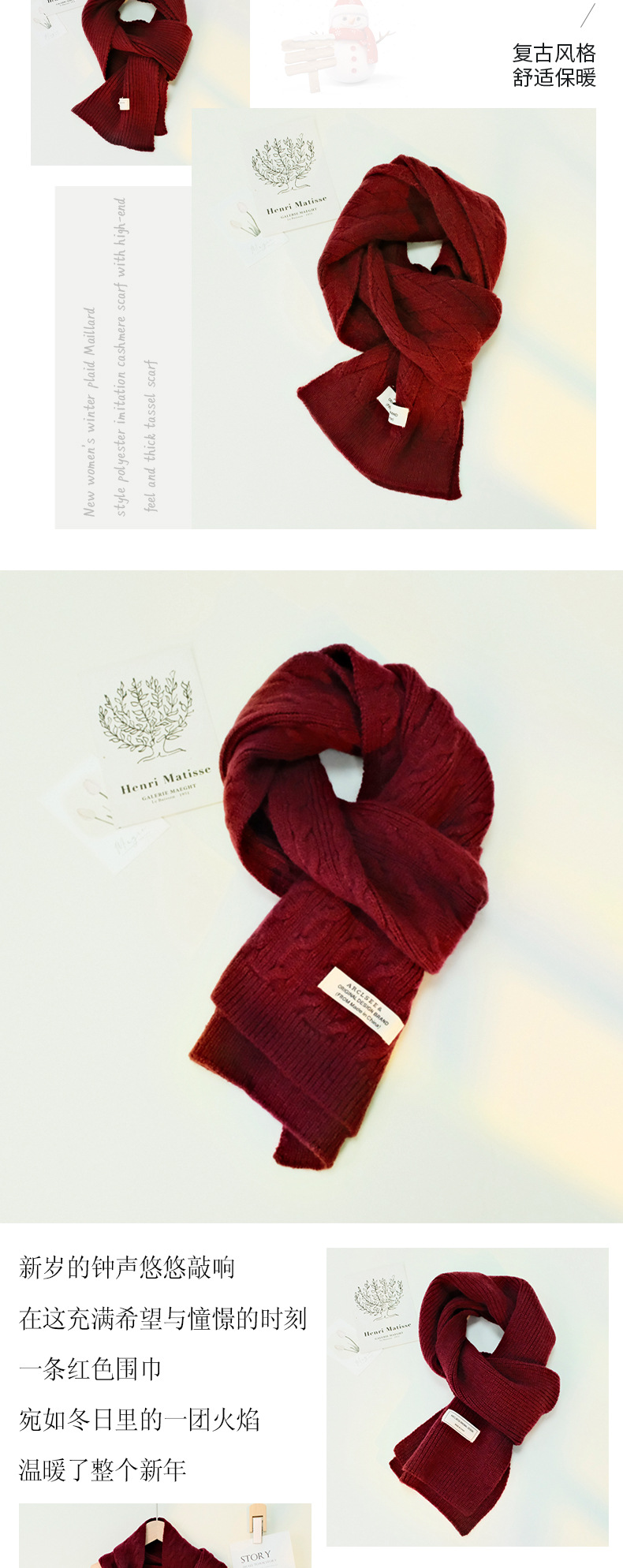 새로운 가을과 겨울 한국 스타일 안코라 레드 니트 스카프 여성 레트로 울 앰비언트 따뜻한 스카프스토어 가기