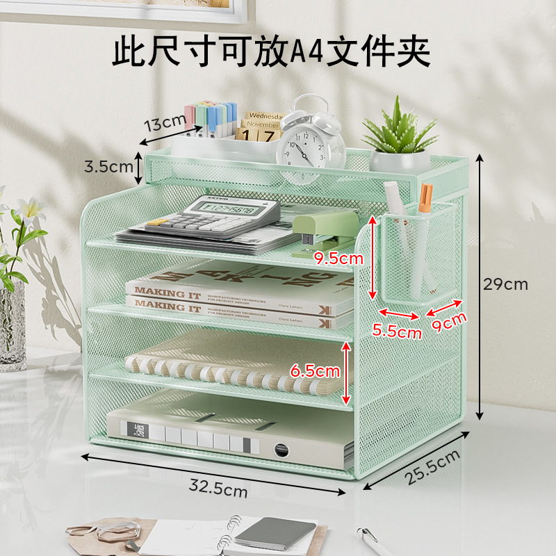 사무실 책상 파일 저장 랙 금속 책 스탠드 파일 랙 파일 프레임 철 다층 폴더 저장 상자 Heng Ming스토어 가기