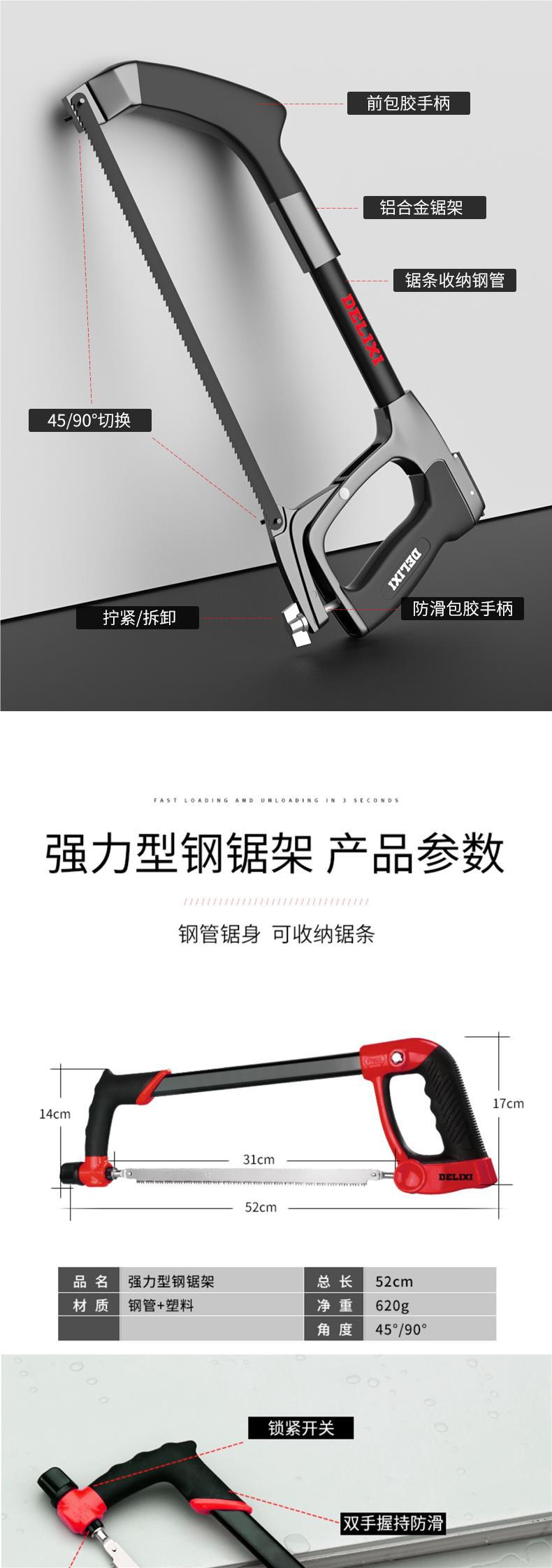 Delixi 강력한 Saw Hacksaw 가정용 소형 핸드 헬드 보우 수제 해발 프레임 금속 절단 톱