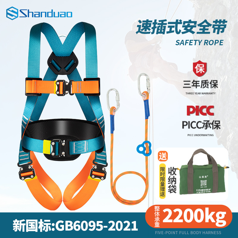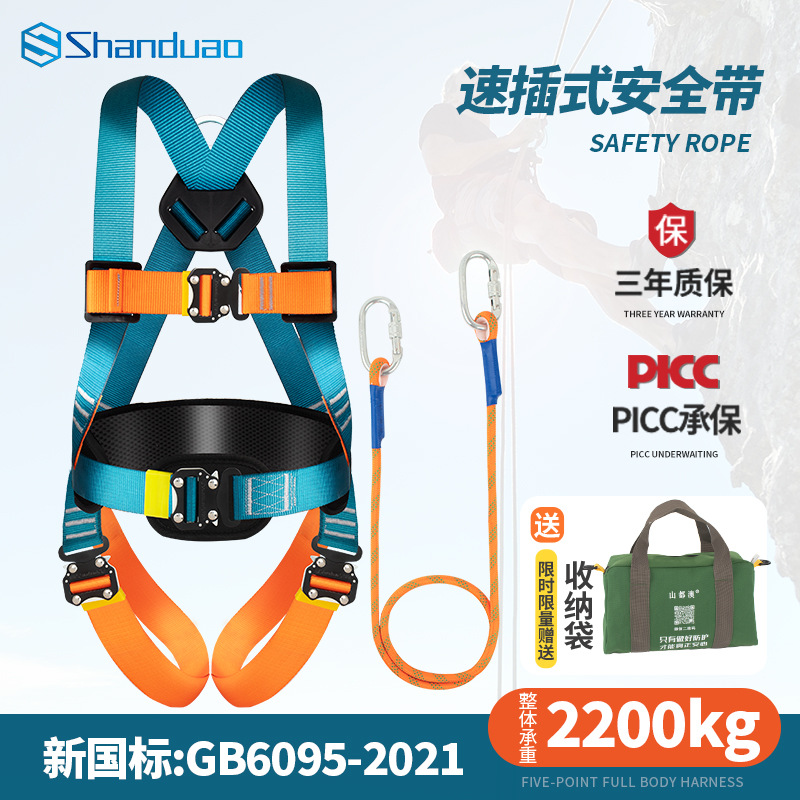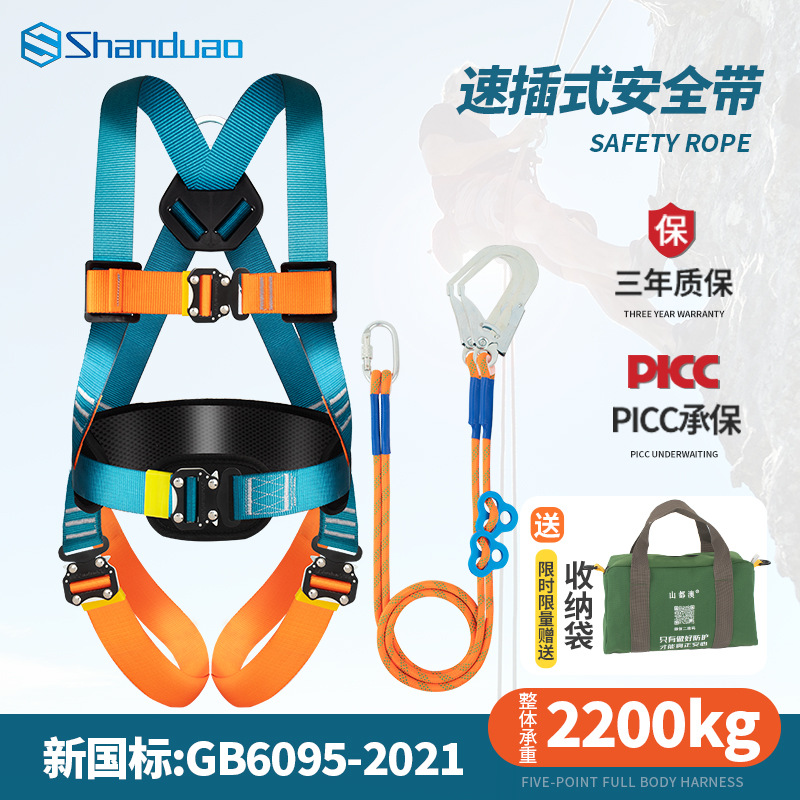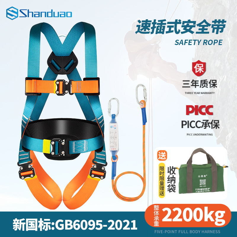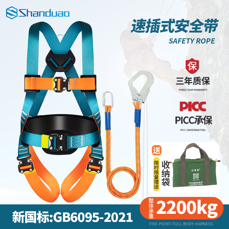 5 점 안전 벨트 고고도 작업 전신 야외 안전 벨트 전기 내마모성 버퍼 백 더블 후크 안전 로프