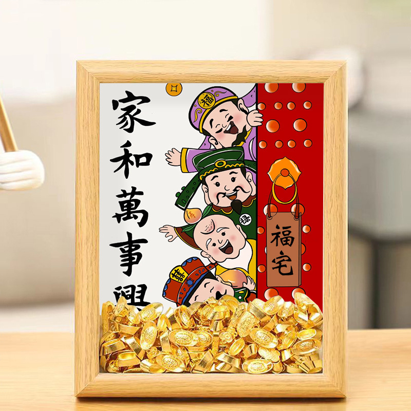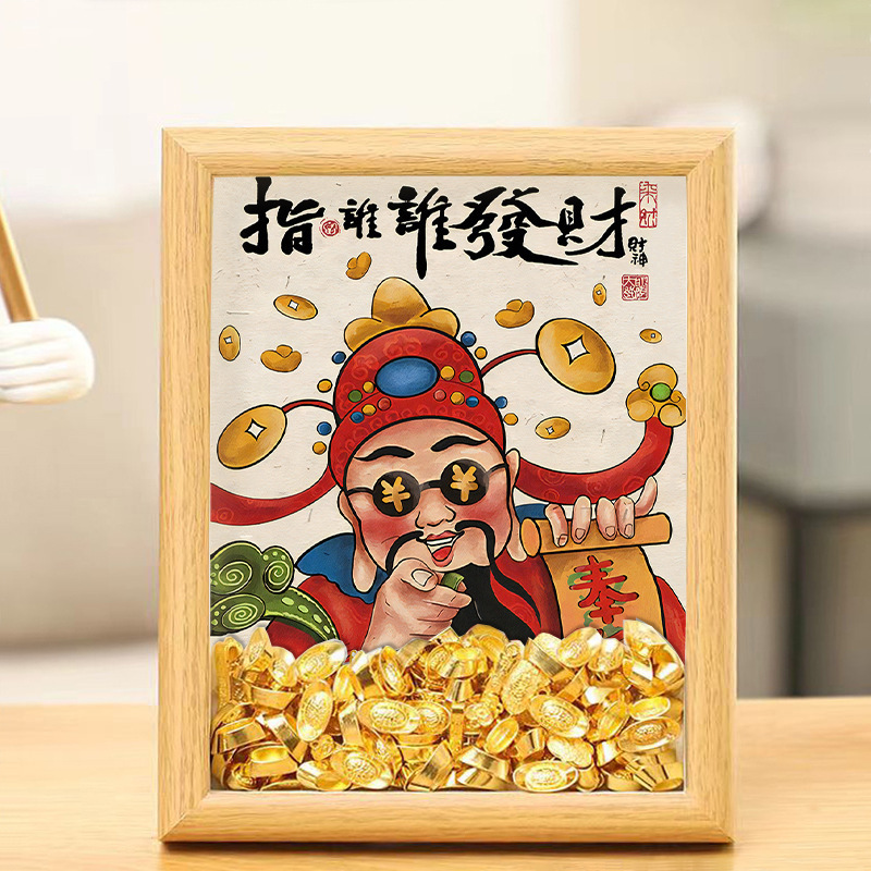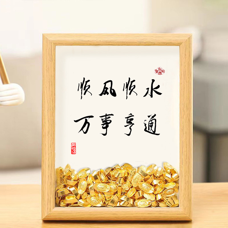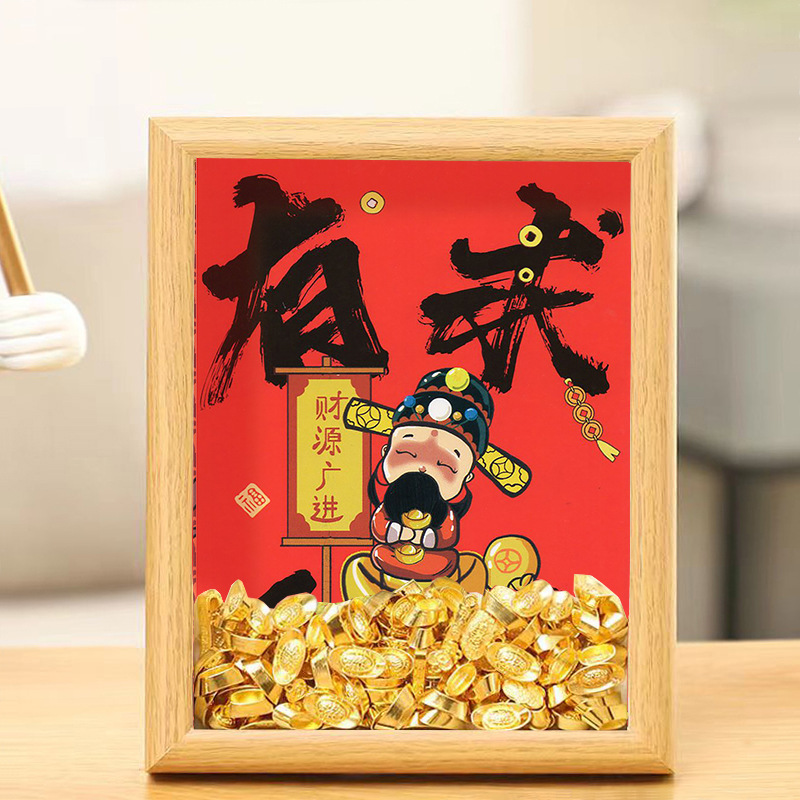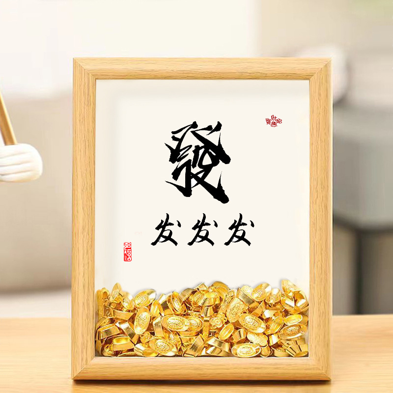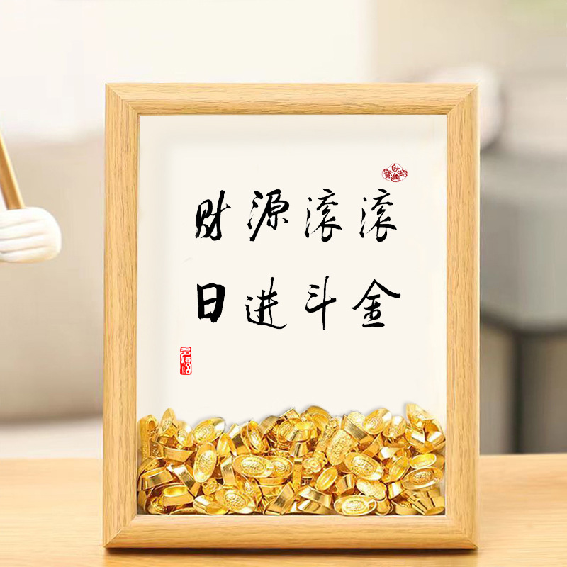 중공 금괴 재물신 입체 창의적 개업 선물 보물통 행운의 상자 DIY 테이블 장식 액자
