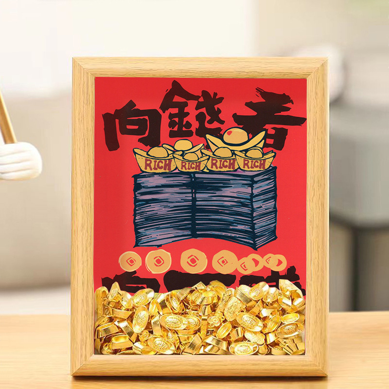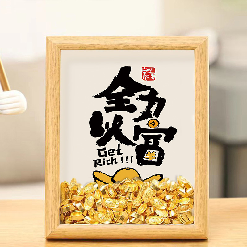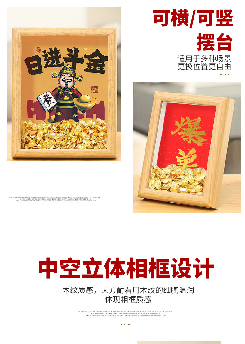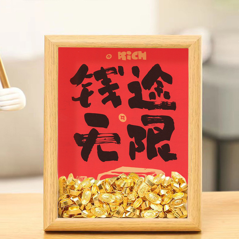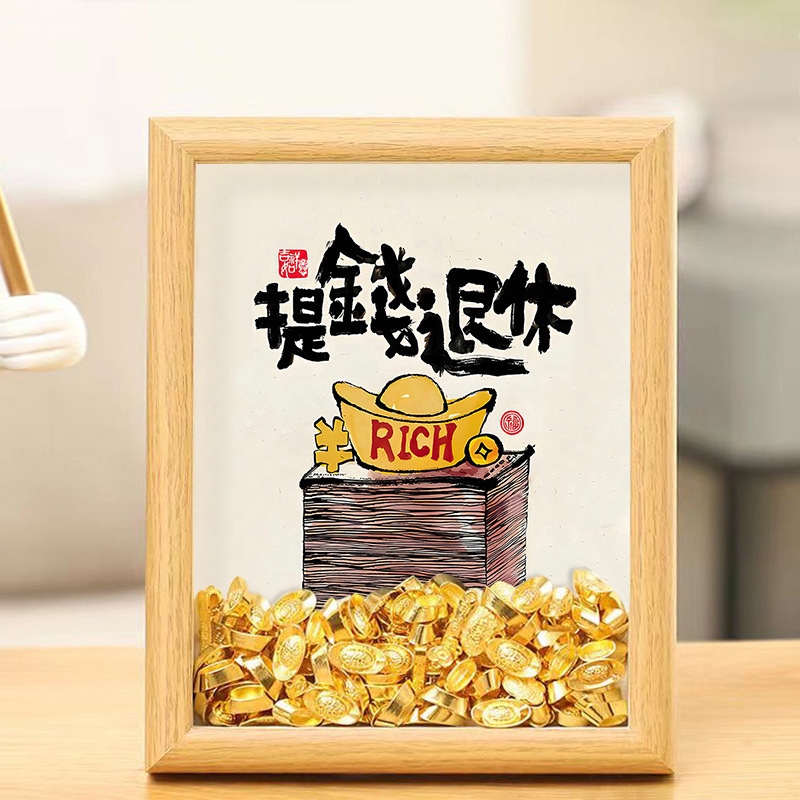 중공 금괴 재물신 입체 창의적 개업 선물 보물통 행운의 상자 DIY 테이블 장식 액자