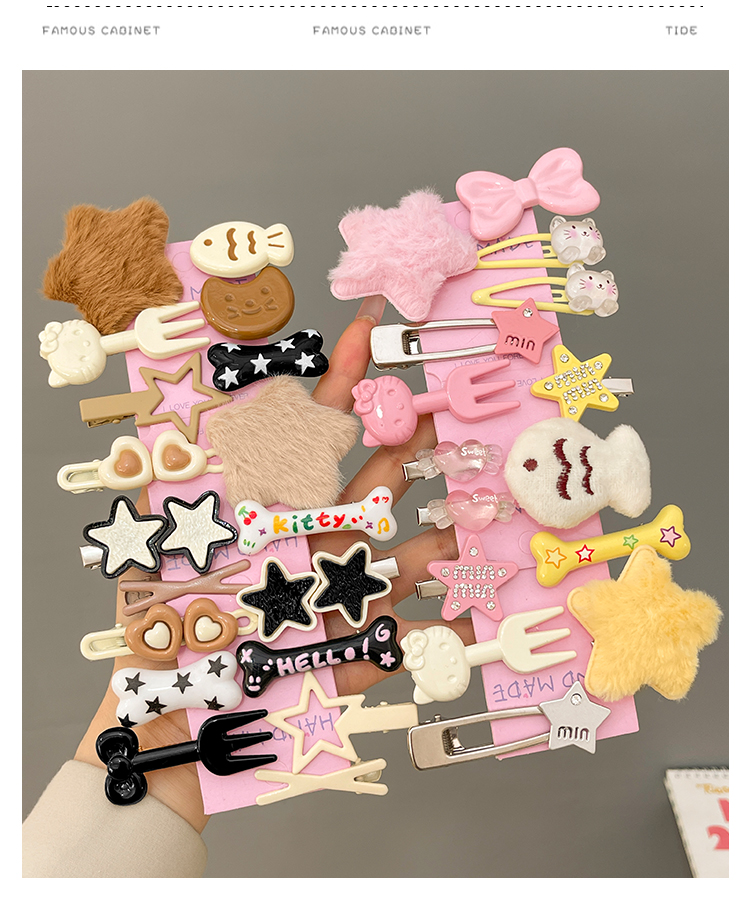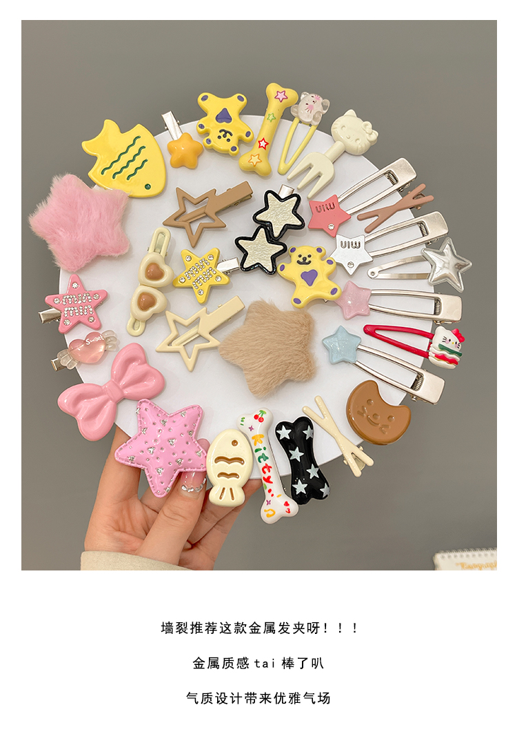 Y2k 소녀 헤어핀 귀여운 웃긴 사이드 뱅 클립 스타 헤어핀 헤드웨어 덕빌 클립 어린이 BB 교수형 비문스토어 가기