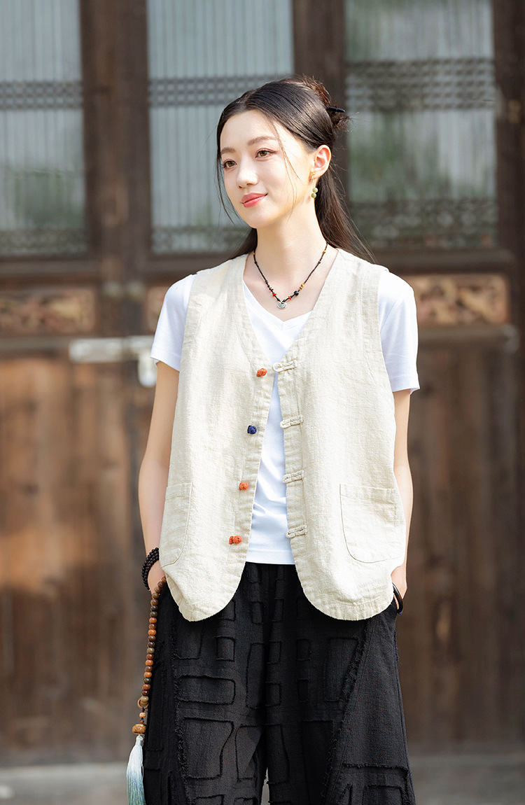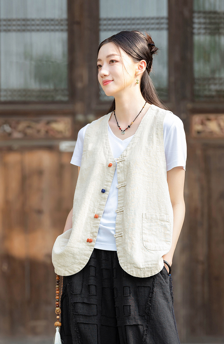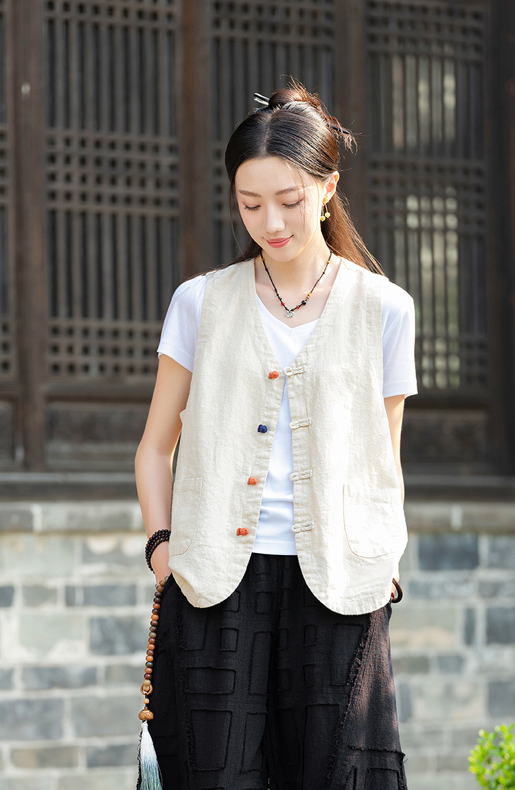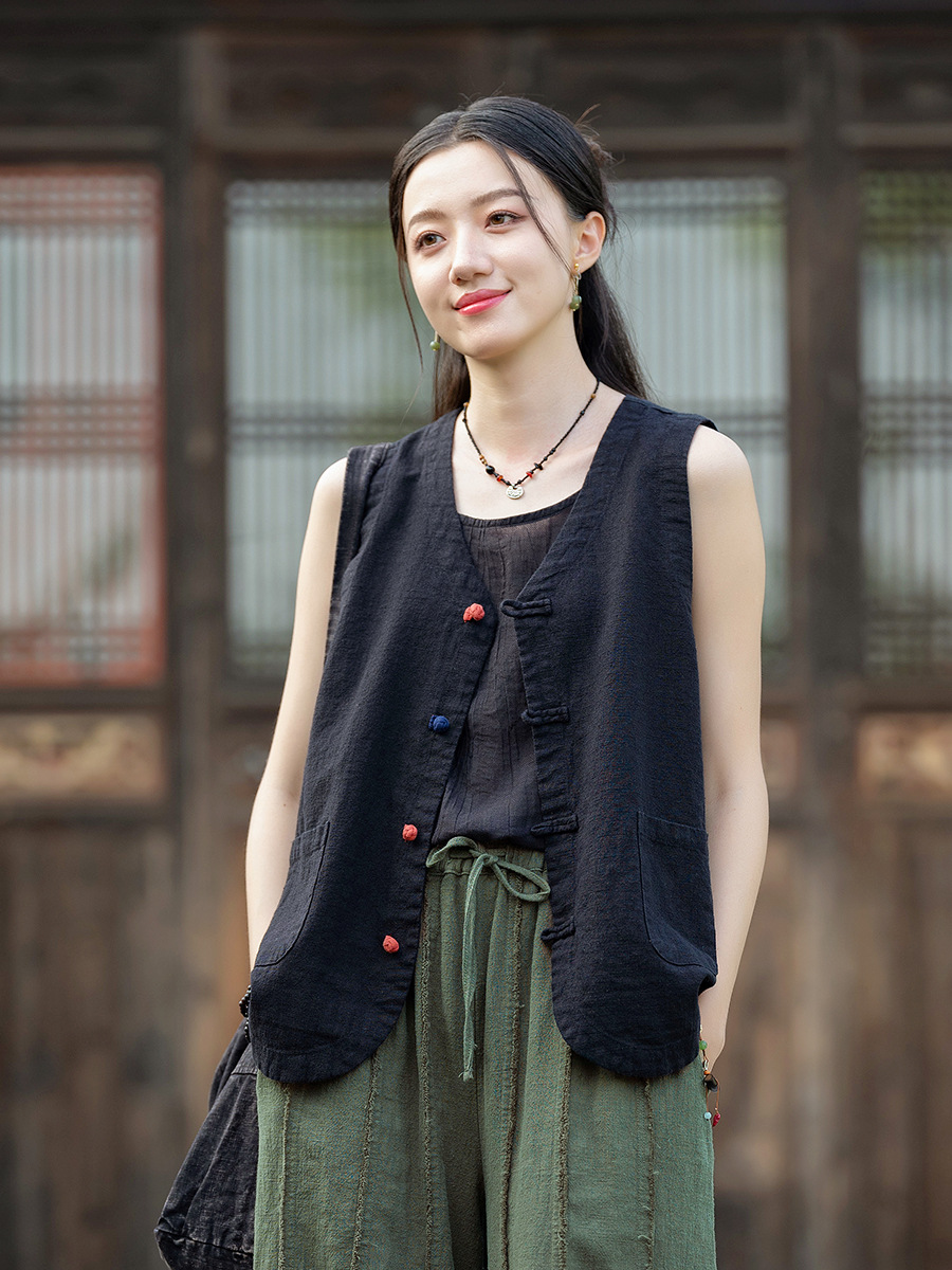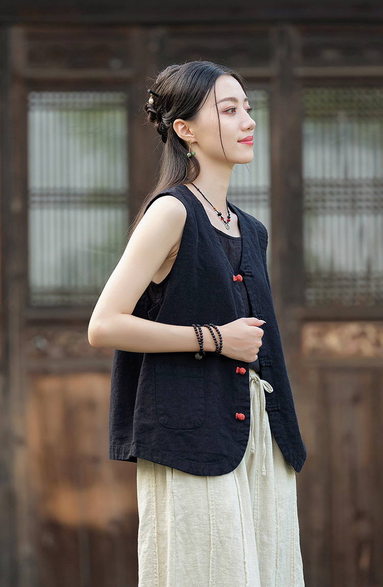 25 가을 새로운 오리지널 중국 스타일 복고풍 국가 스타일 대비 색상 버튼 코튼과 린넨 탑 조끼 카디건 여성용 양복 조끼스토어 가기