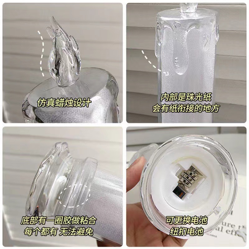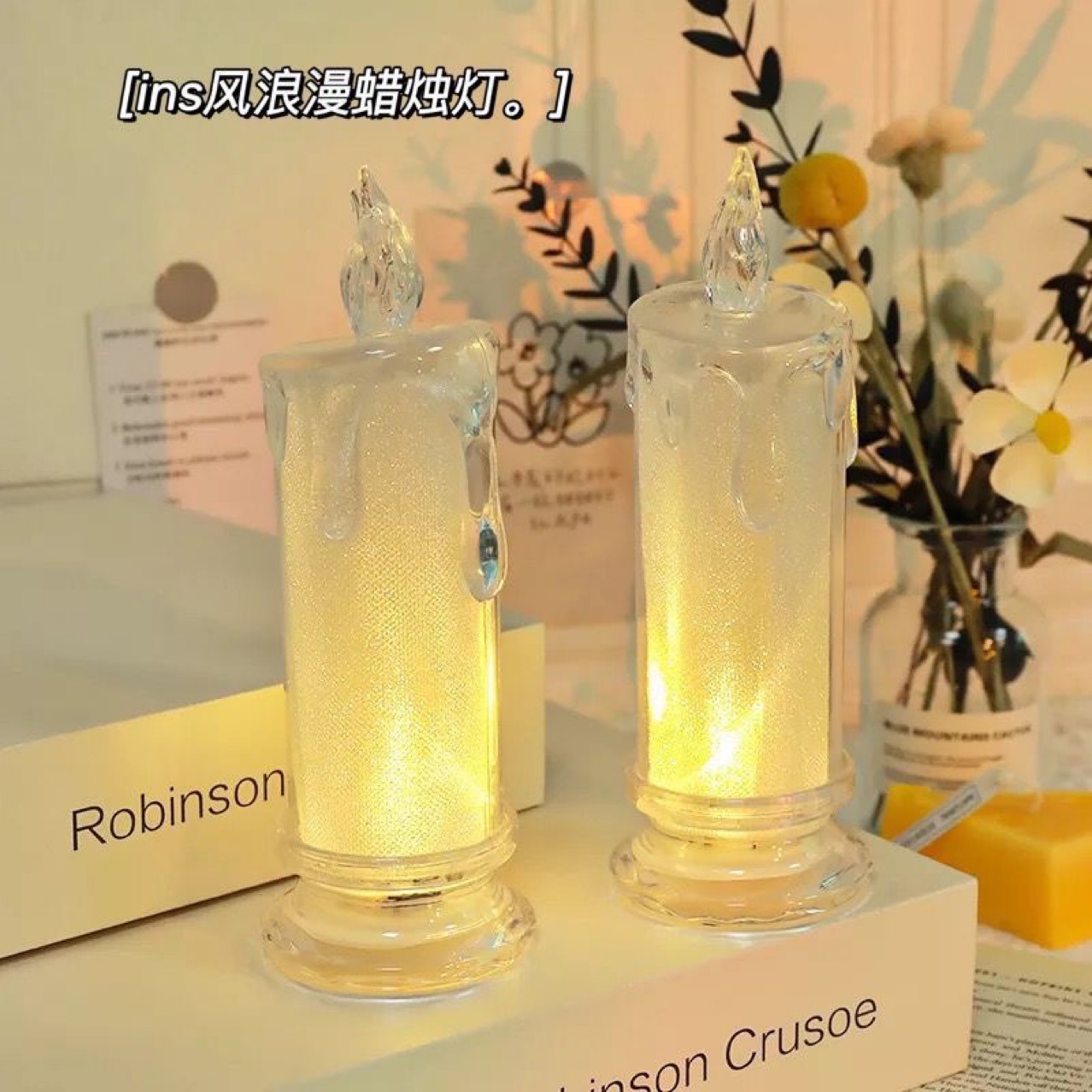 크리스마스 발광 전자 캔들 라이트 LED 아크릴 로맨틱 장식 야간등 침대 옆 분위기 조성 모형 장식품