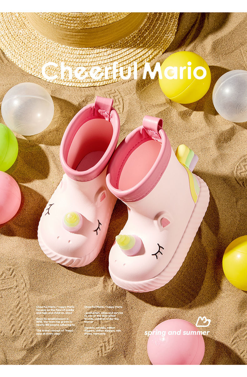 유니콘 어린이 장화 소녀 아기 장화 물 신발 학생 어린이 미끄럼 방지 아기 고무 신발 냄새 나는 발
