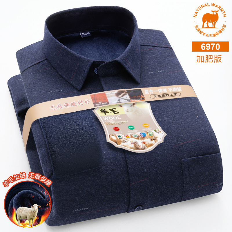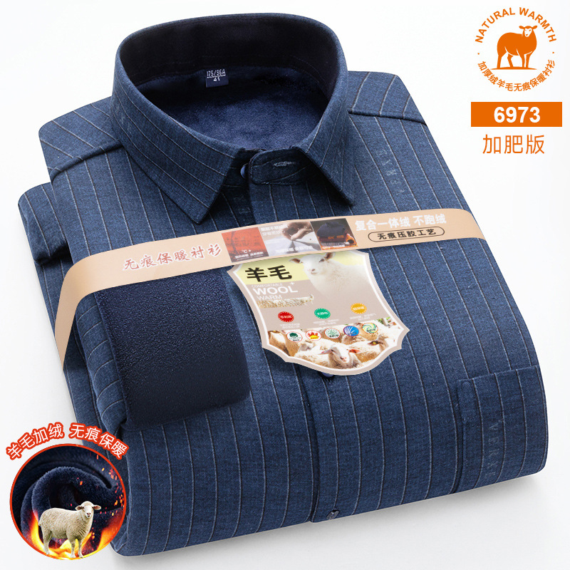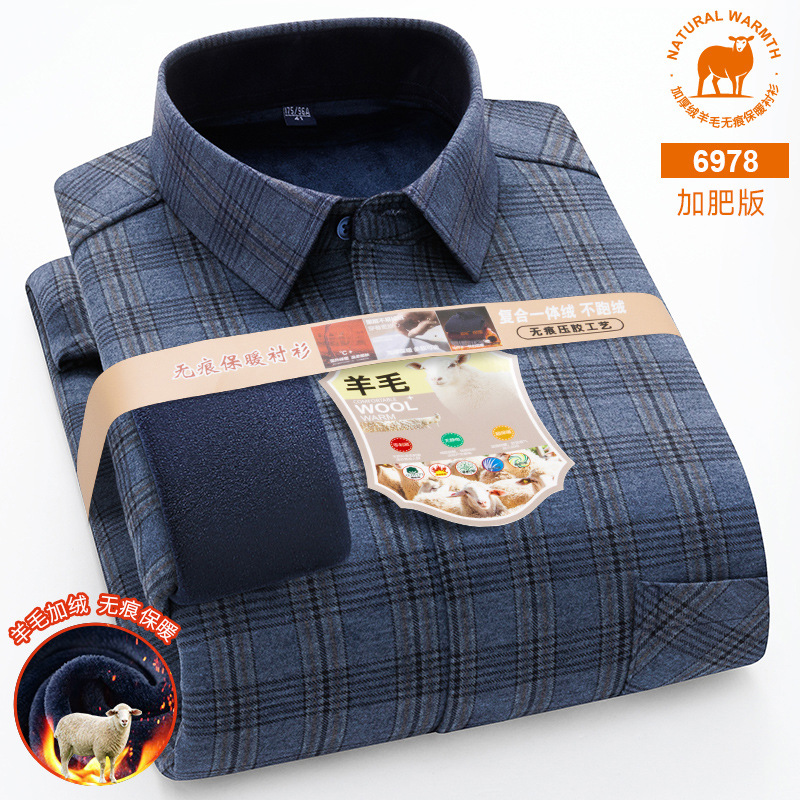 새 양모 따뜻한 셔츠 남자 긴팔 기모 두꺼운 격자 무늬 줄무늬 슈퍼 플러스 사이즈 중년 아빠의 셔츠스토어 가기