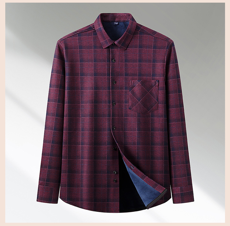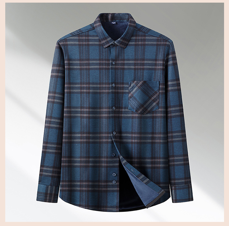 새 양모 따뜻한 셔츠 남자 긴팔 기모 두꺼운 격자 무늬 줄무늬 슈퍼 플러스 사이즈 중년 아빠의 셔츠