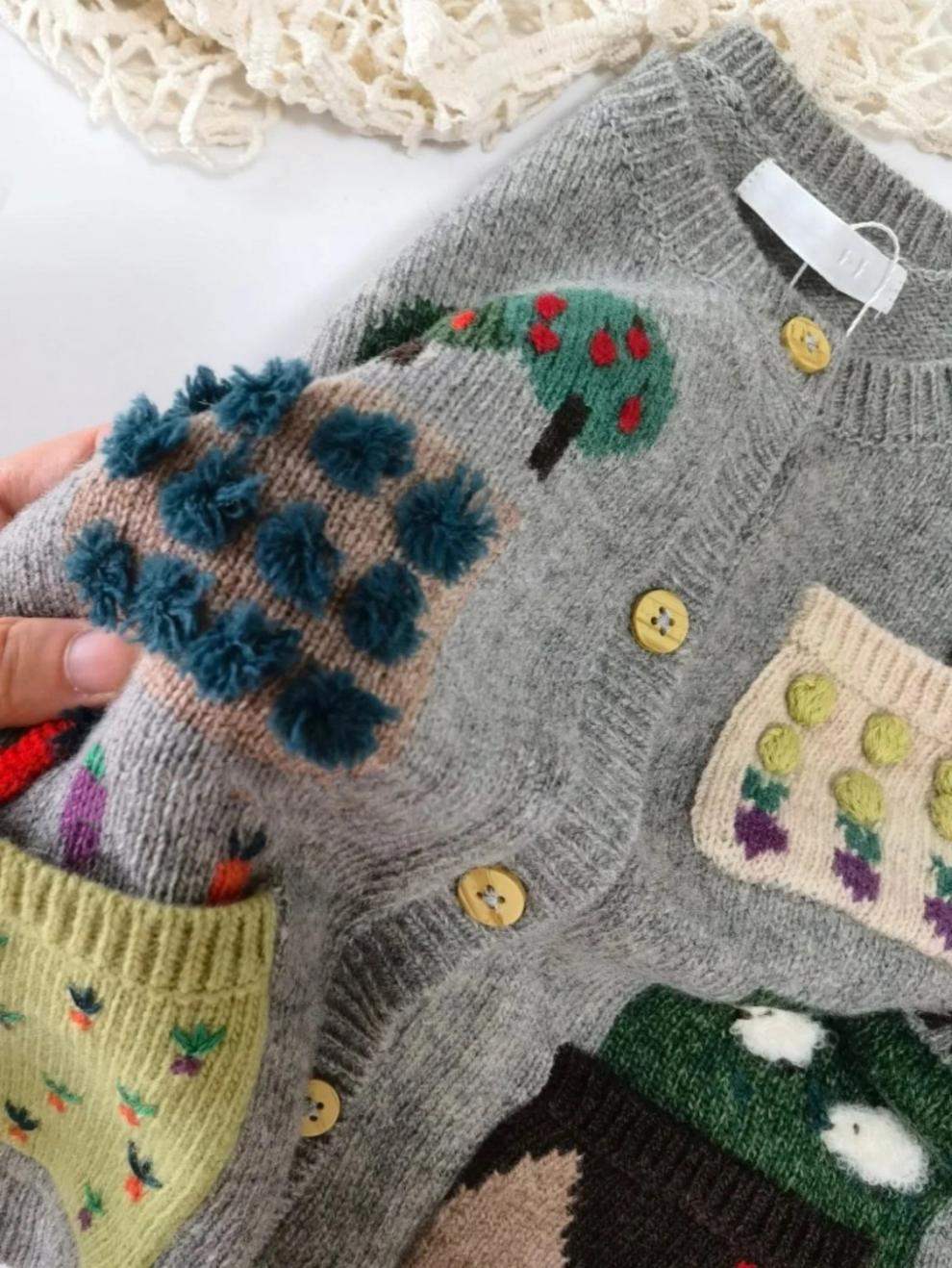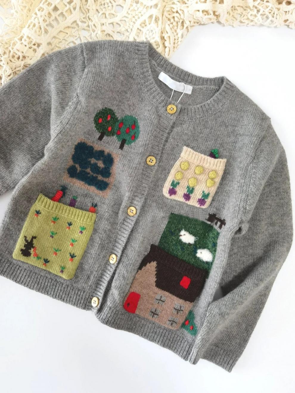 클리어런스 캐시미어 클래스 A 헤비 핸드 자수 소년 소녀 가을 및 겨울 어린이 니트 카디건 어린이 스웨터