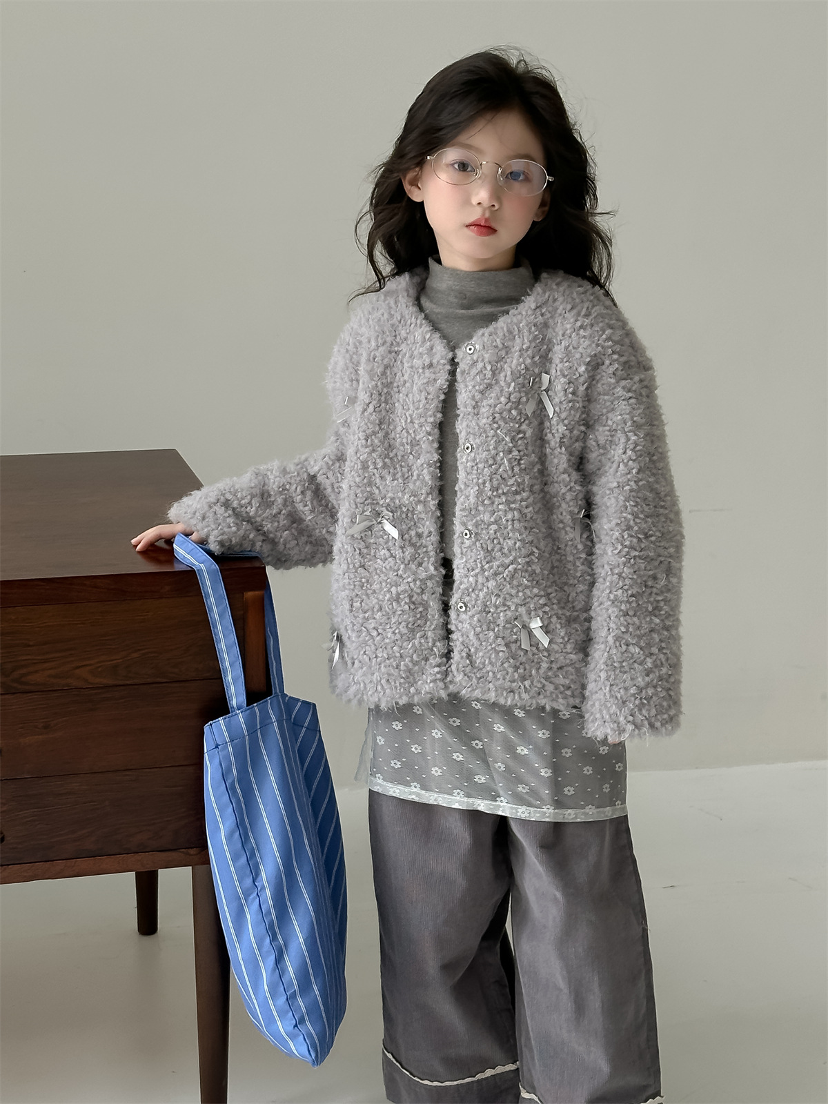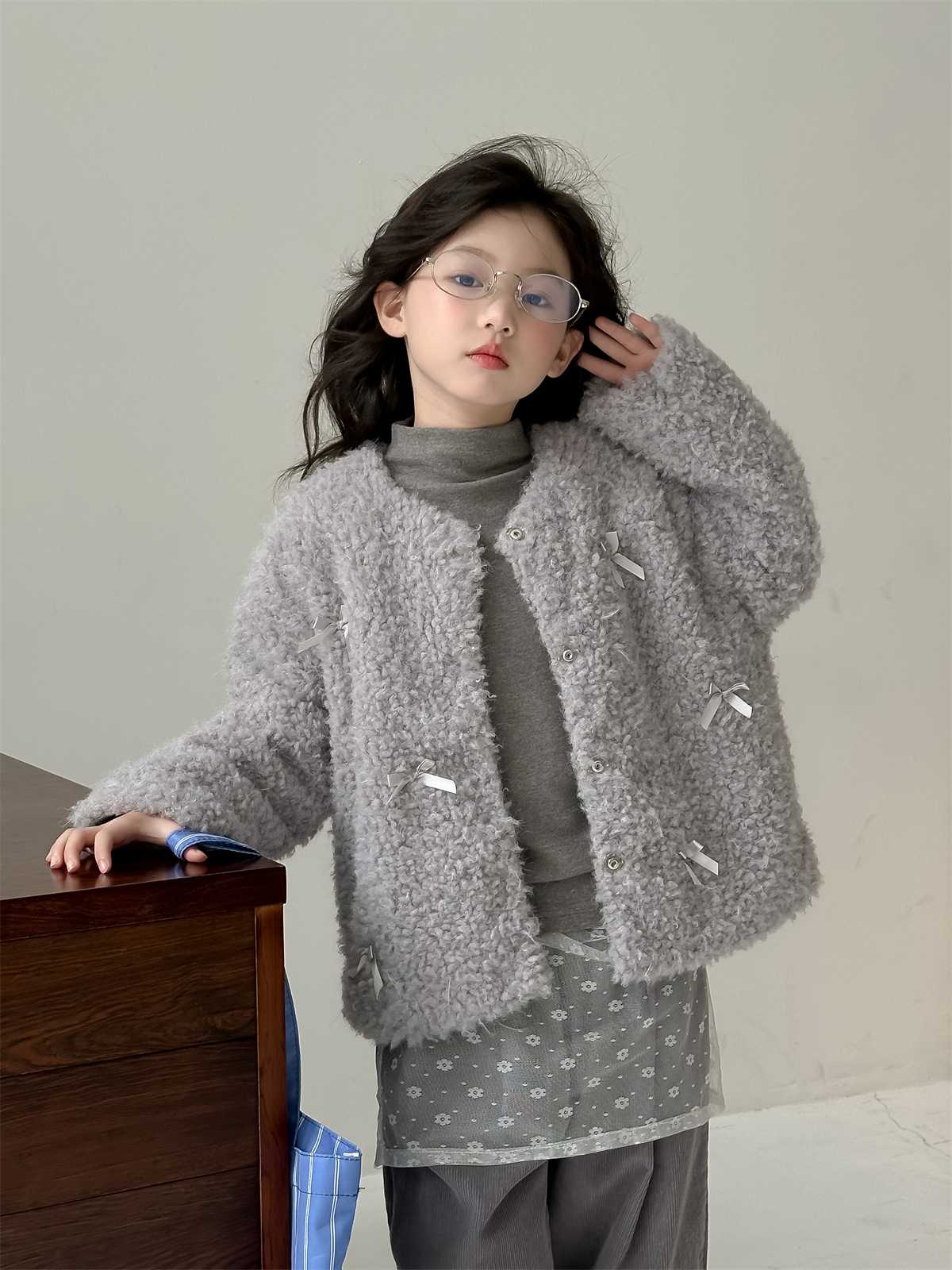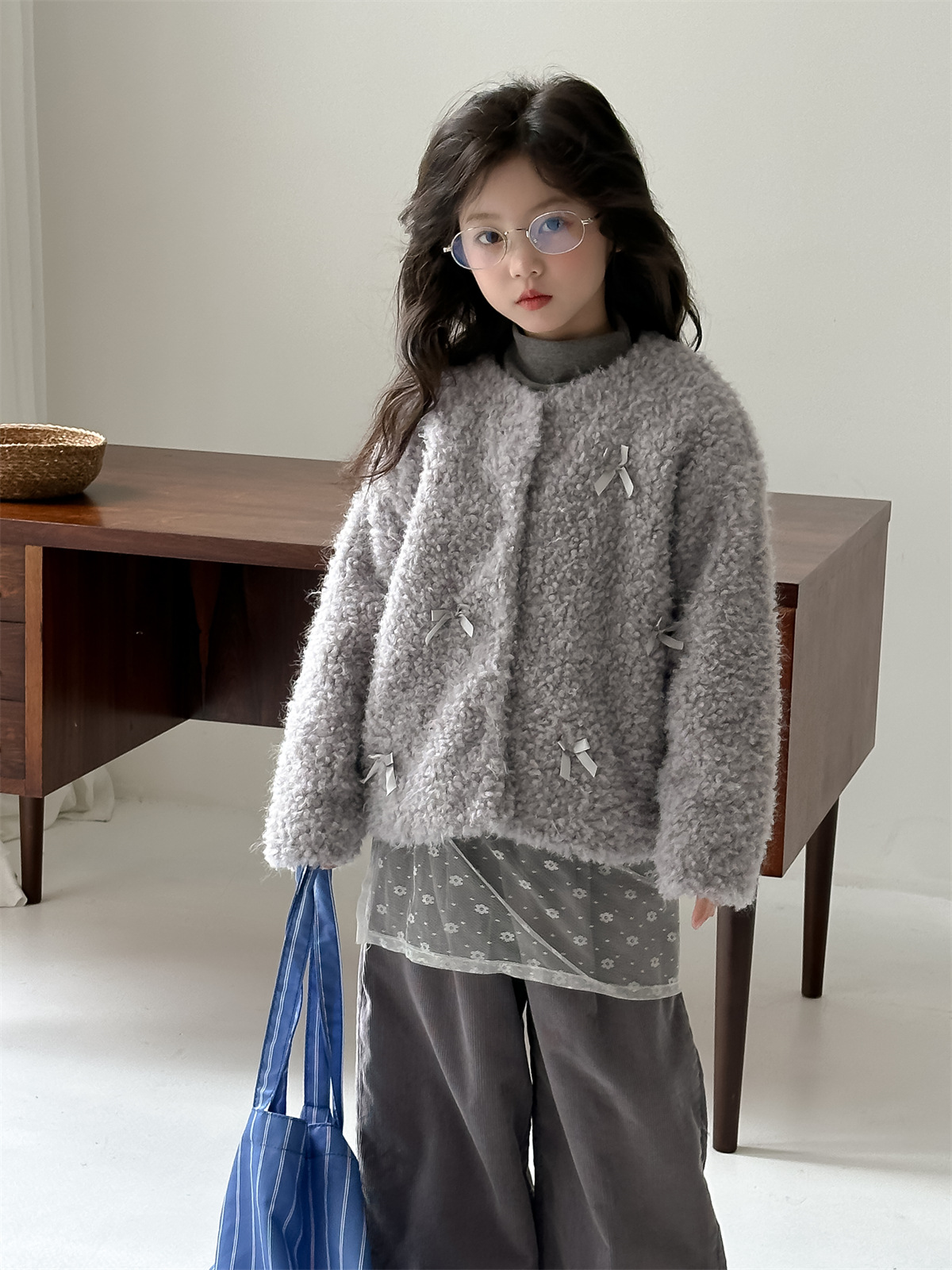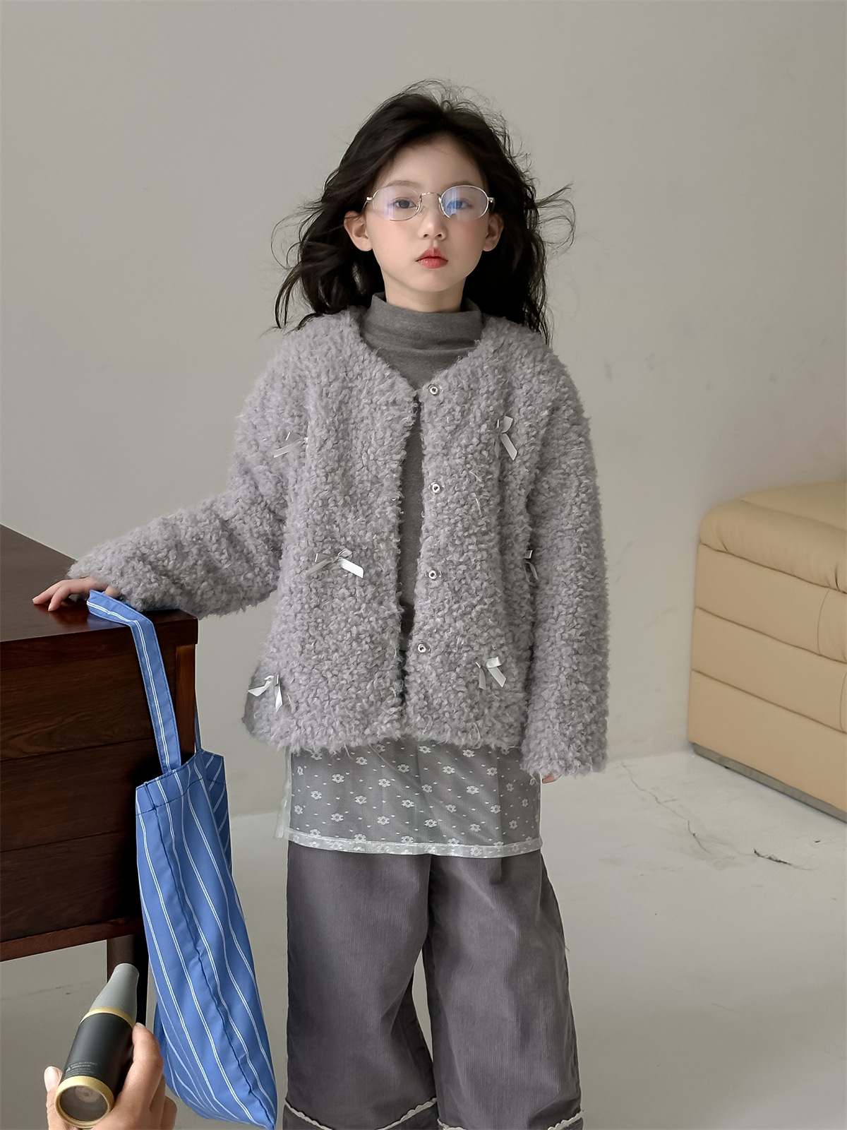 꽃과 헤어드레싱 한국판 2024 신상 겨울 여아 리본 모피 스웨터 중대형 아동 캐주얼 따뜻한 재킷 트렌디스토어 가기