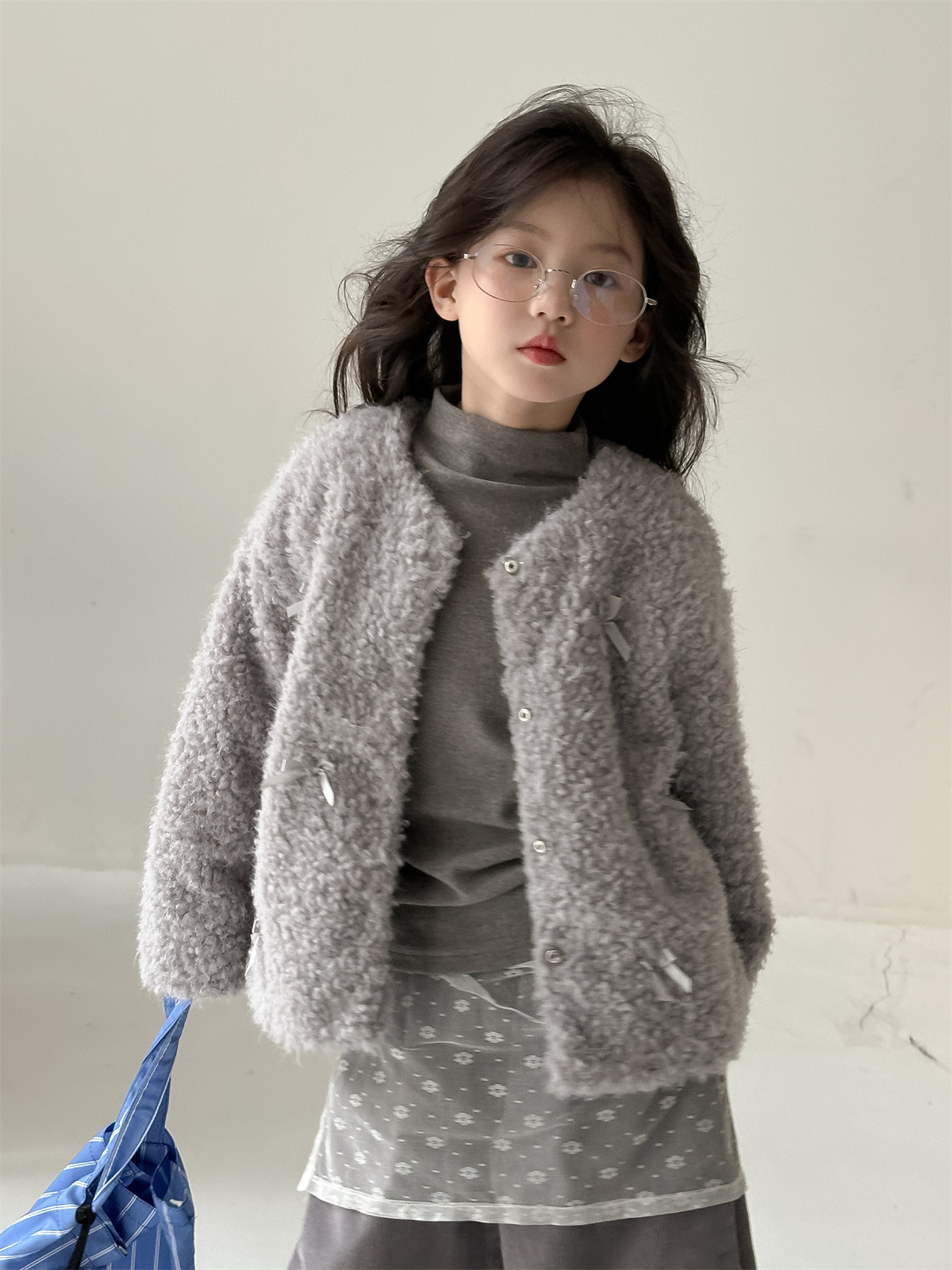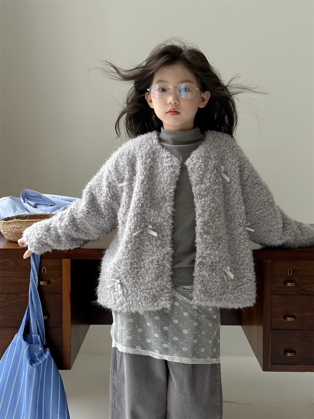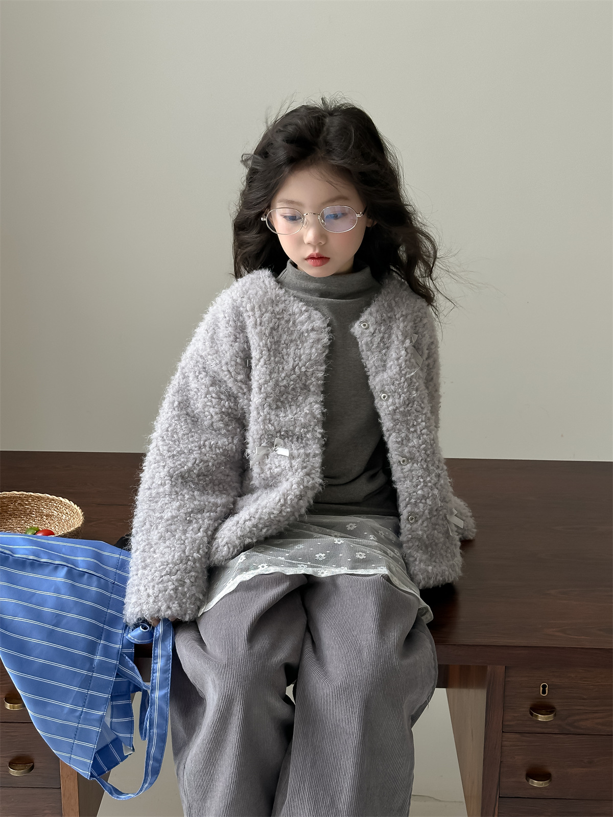 꽃과 헤어드레싱 한국판 2024 신상 겨울 여아 리본 모피 스웨터 중대형 아동 캐주얼 따뜻한 재킷 트렌디스토어 가기