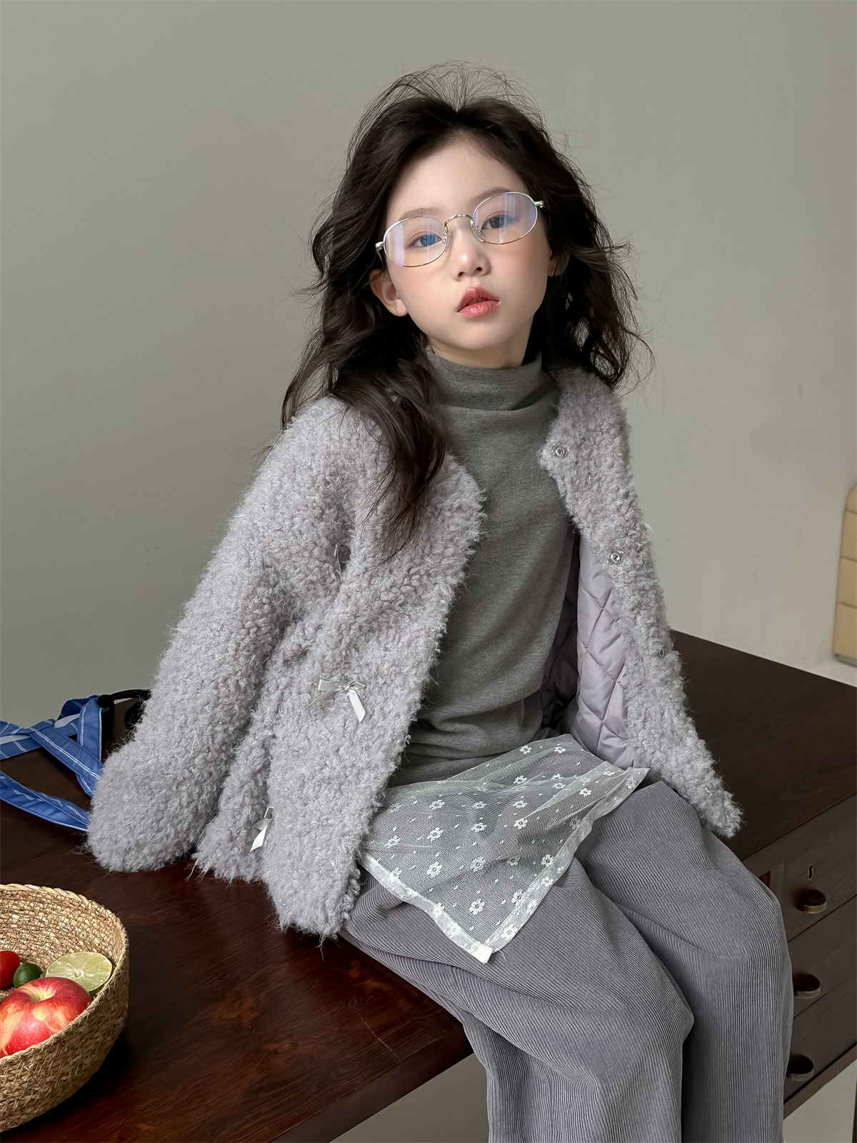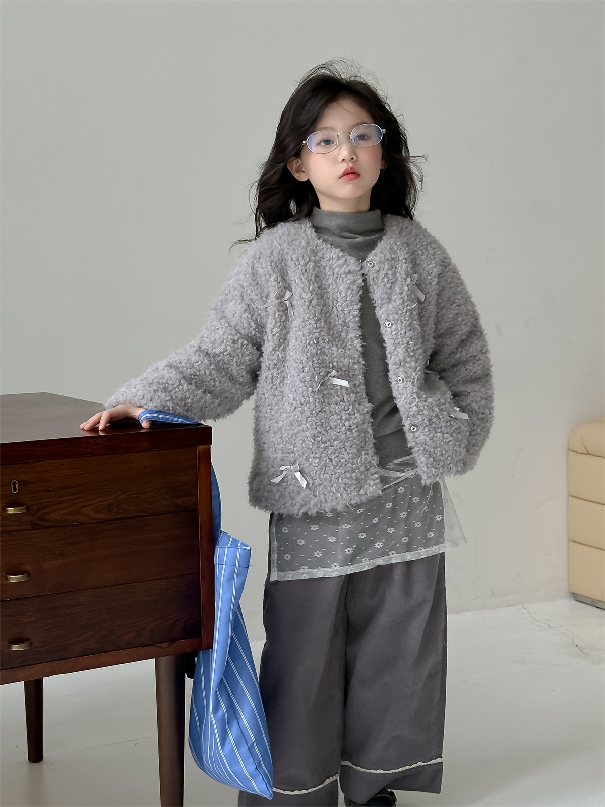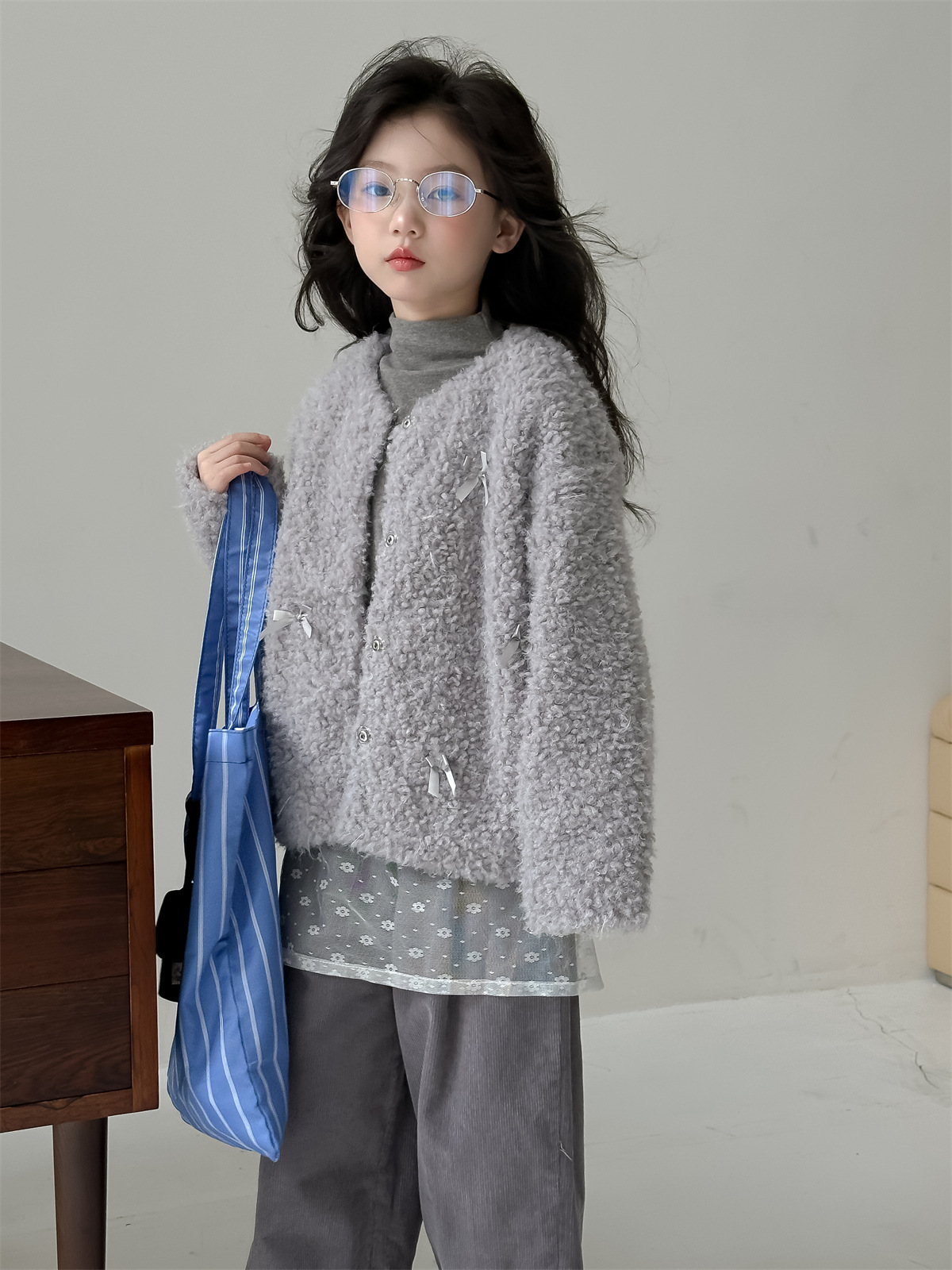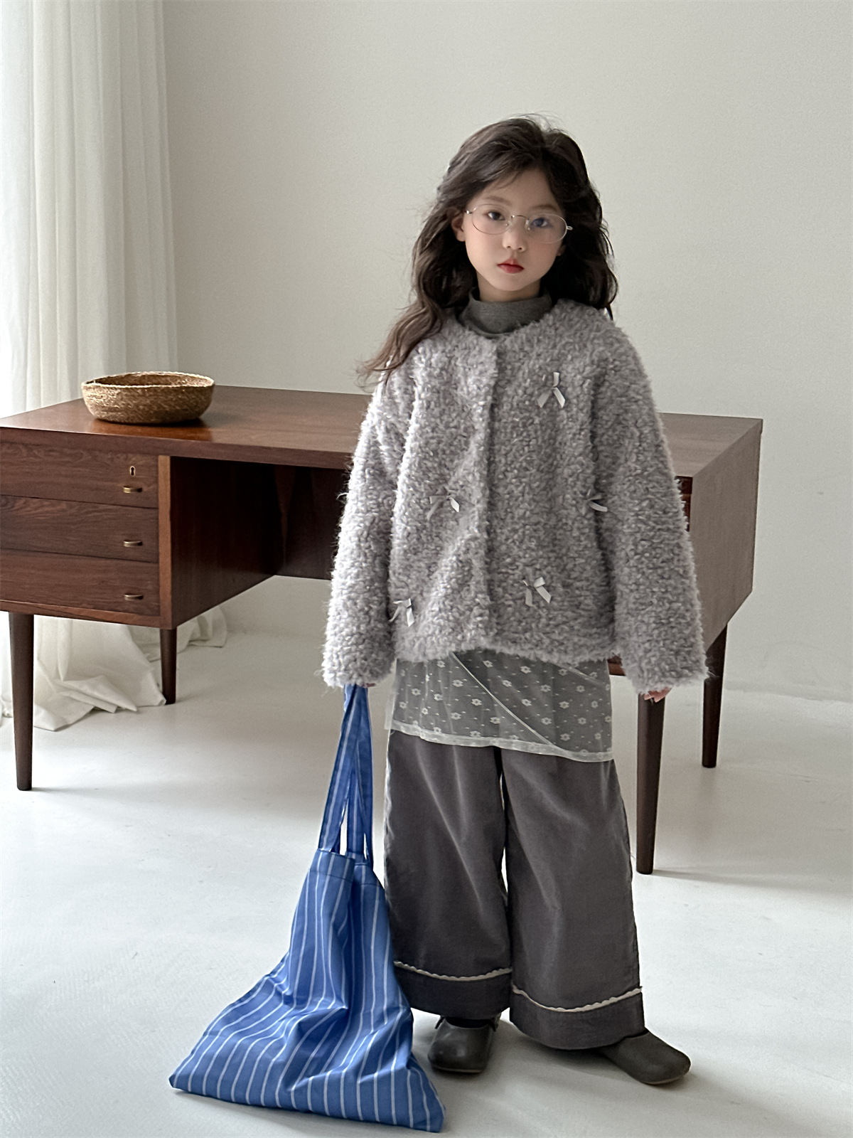 꽃과 헤어드레싱 한국판 2024 신상 겨울 여아 리본 모피 스웨터 중대형 아동 캐주얼 따뜻한 재킷 트렌디스토어 가기