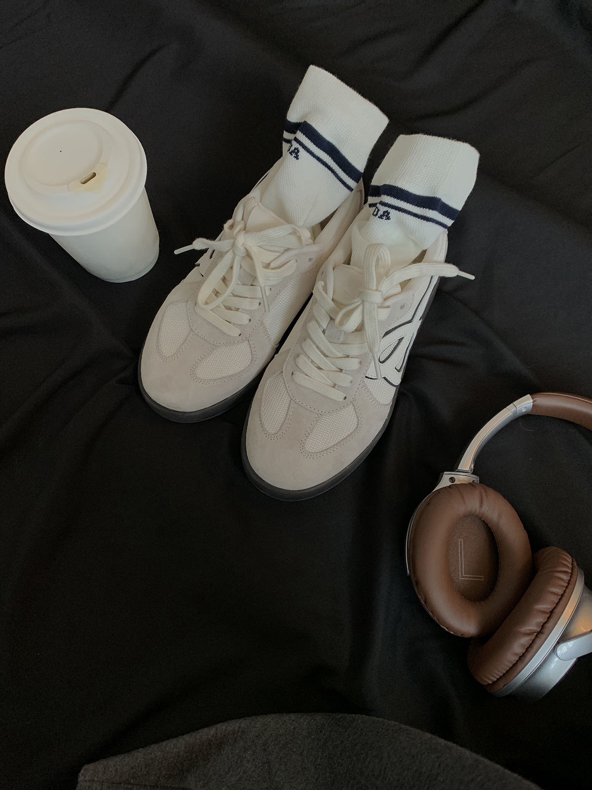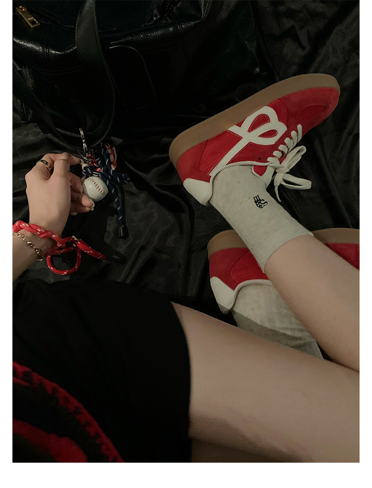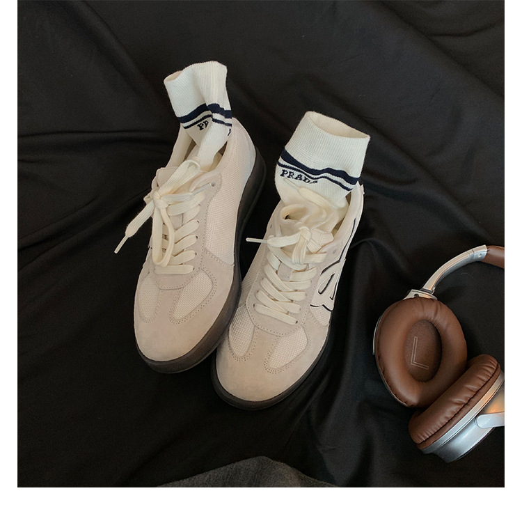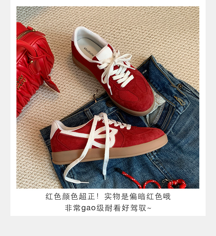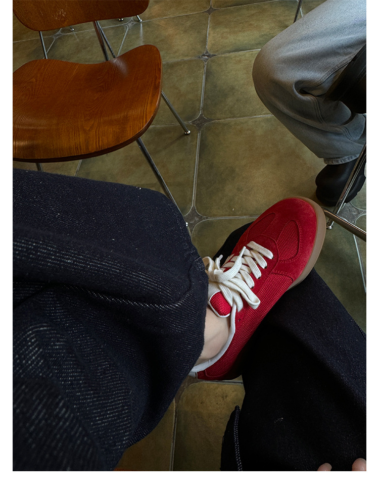 포도 엄마 studiolee 정품 가죽 빈티지 통기성 라운드 토 레이스 업 두꺼운 밑창 높이 증가 경량 덱신 스니커즈스토어 가기