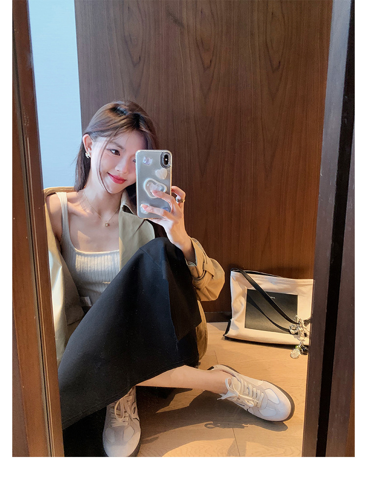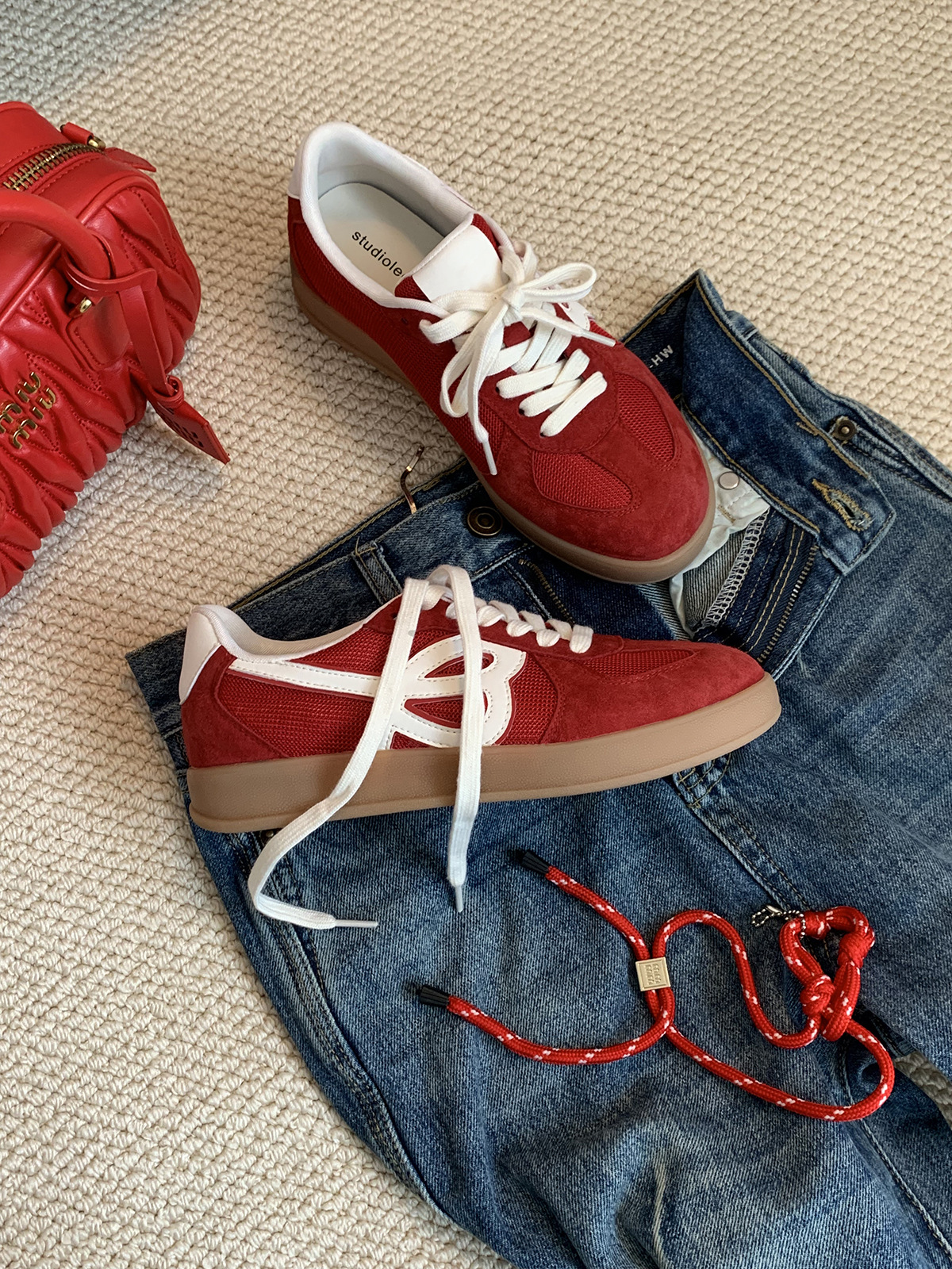 포도 엄마 studiolee 정품 가죽 빈티지 통기성 라운드 토 레이스 업 두꺼운 밑창 높이 증가 경량 덱신 스니커즈