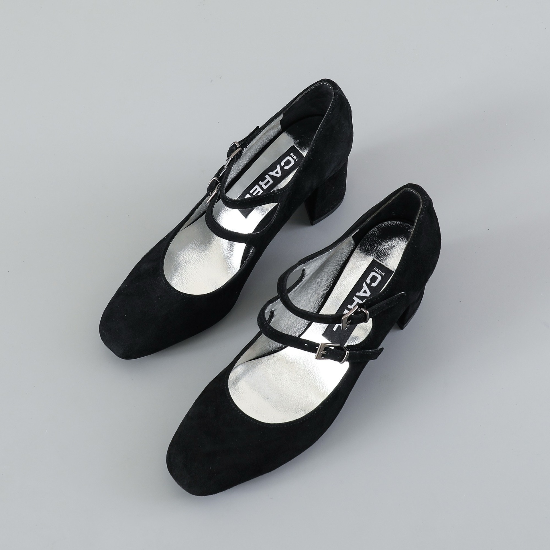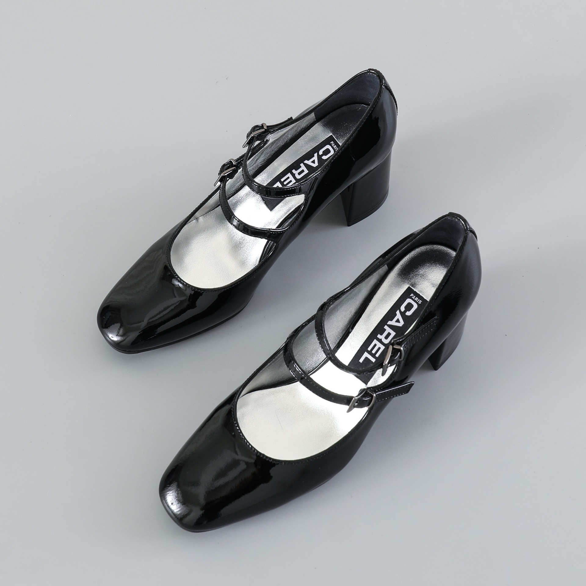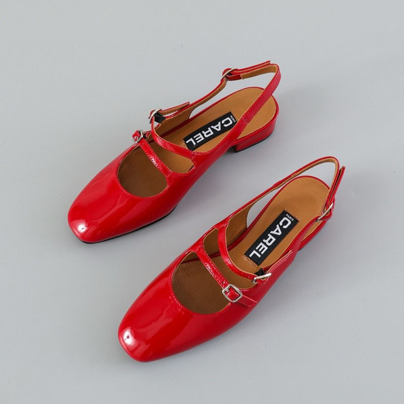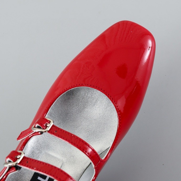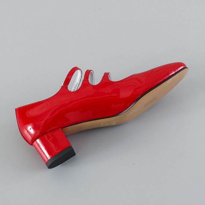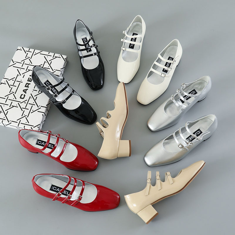 틈새 순수 오리지널 카렐 프랑스 스타일 빈티지 메리 제인 신발 여자 3 방향 벨트 두꺼운 미드 힐 싱글 레이어 신발 밝은 가죽 레드 웨딩 슈즈스토어 가기