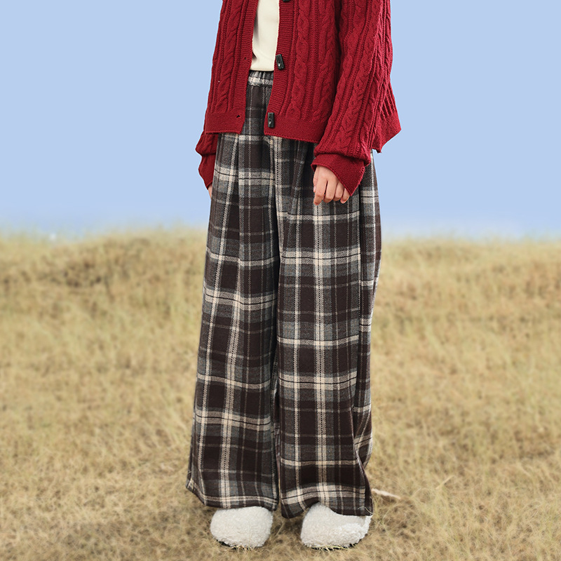 • 브라운 체크무늬 팬츠