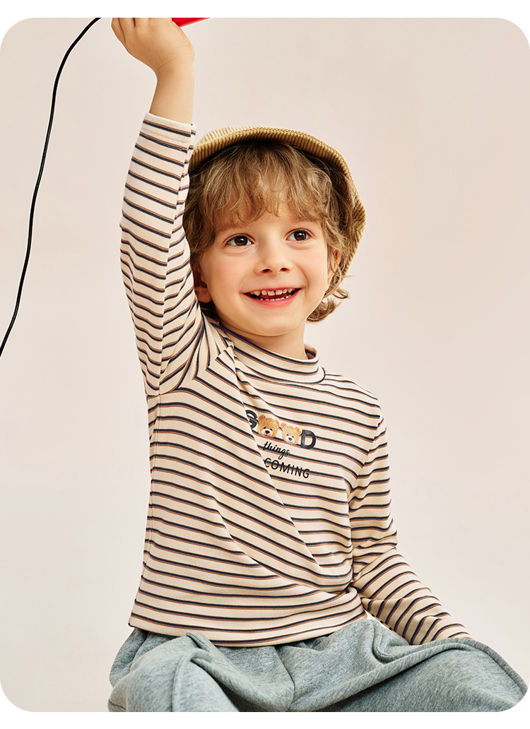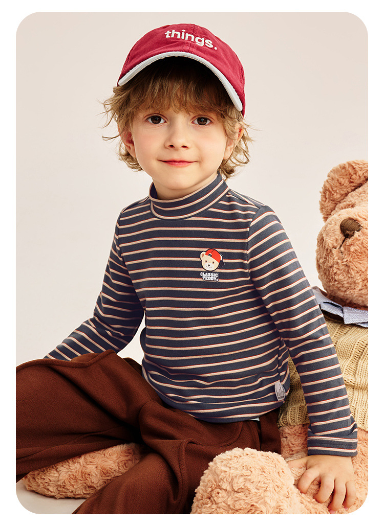 클래식 반팔 테디 소년 긴팔 T 어린이 세미 하이 칼라 풀오버 탑 아동복 가을 줄무늬스토어 가기
