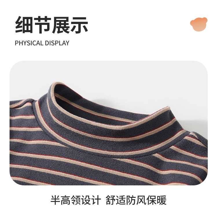 클래식 반팔 테디 소년 긴팔 T 어린이 세미 하이 칼라 풀오버 탑 아동복 가을 줄무늬