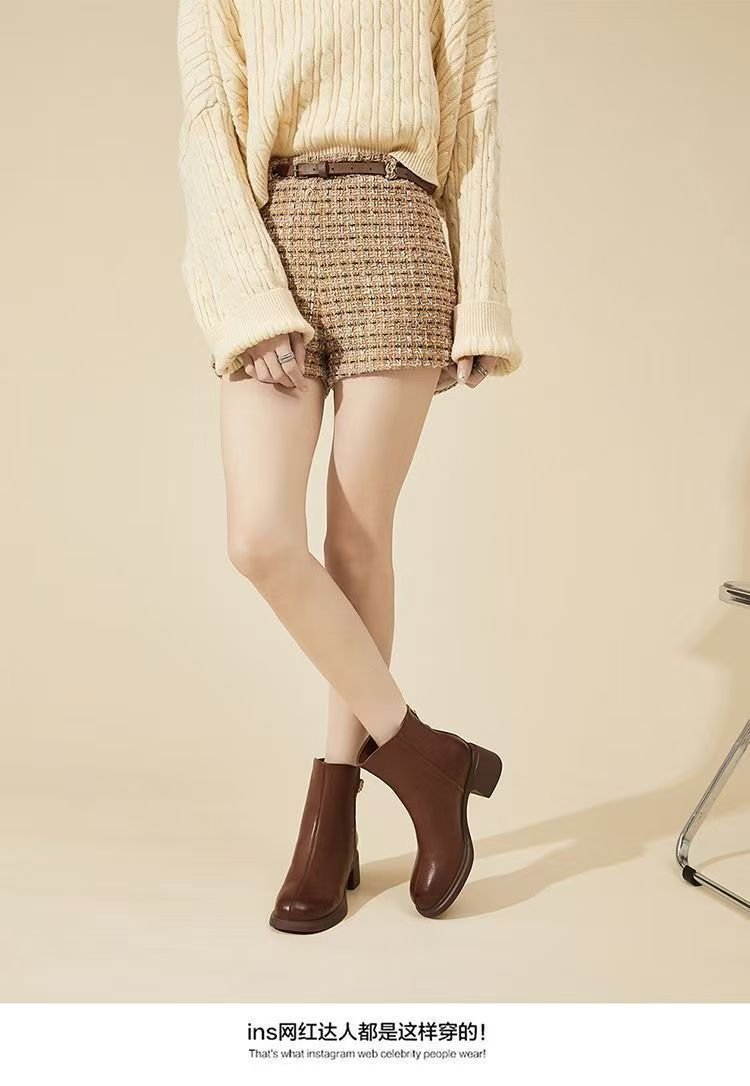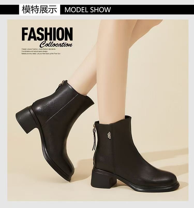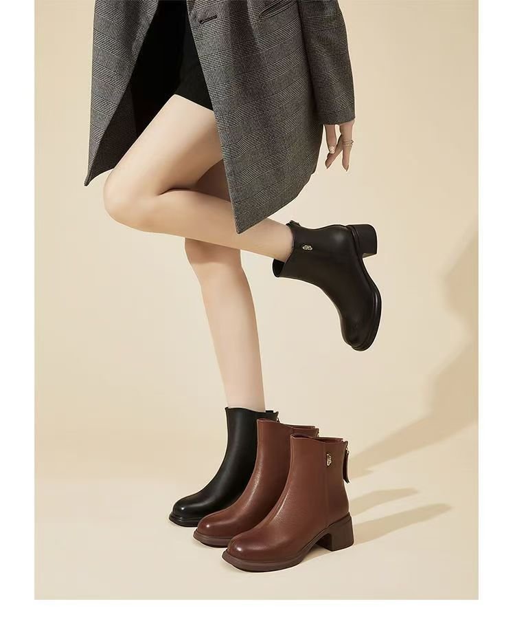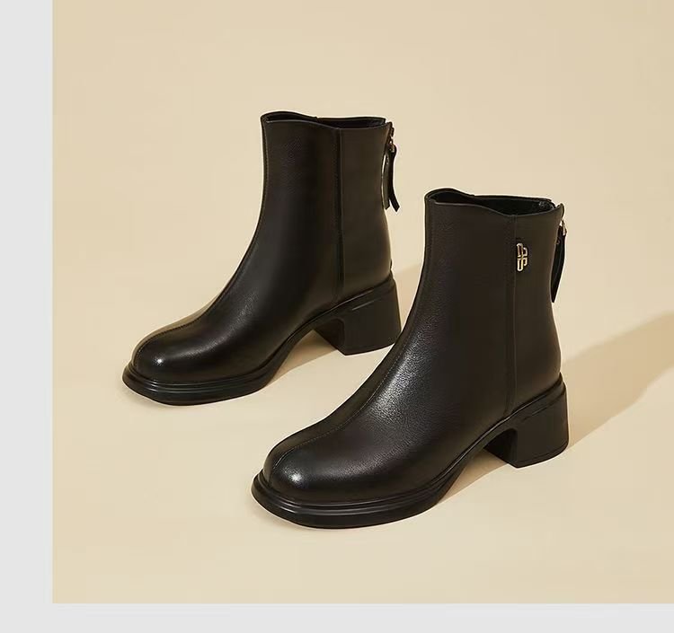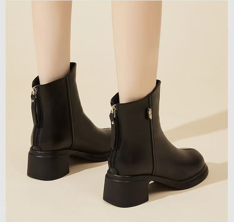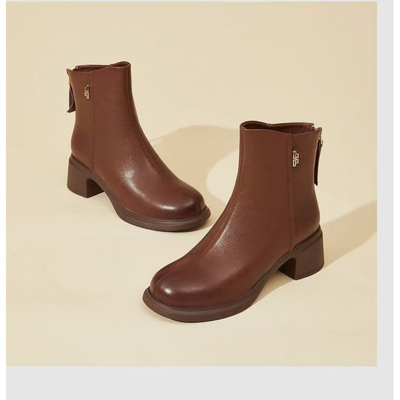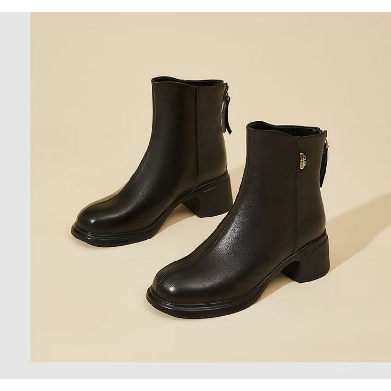 진짜 부드러운 가죽 마틴 부츠 여성 2024 가을 겨울 새로운 라운드 발가락 두꺼운 힐 부드러운 바닥 가죽 부츠 편안한 다양한 기모 작은 가죽 부츠스토어 가기