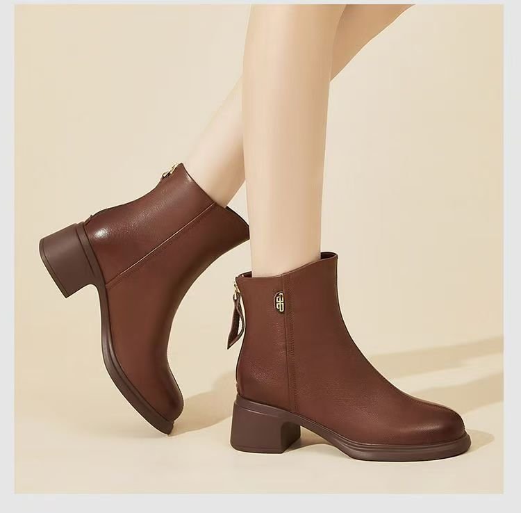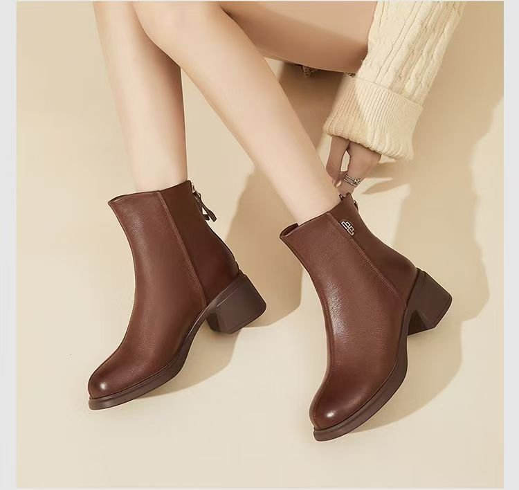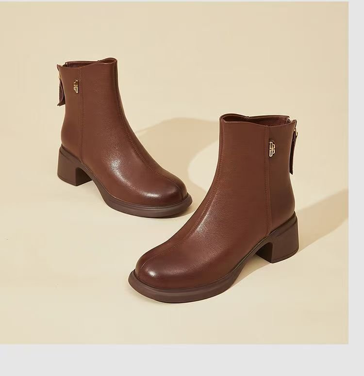 진짜 부드러운 가죽 마틴 부츠 여성 2024 가을 겨울 새로운 라운드 발가락 두꺼운 힐 부드러운 바닥 가죽 부츠 편안한 다양한 기모 작은 가죽 부츠