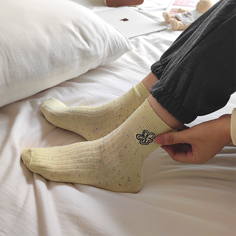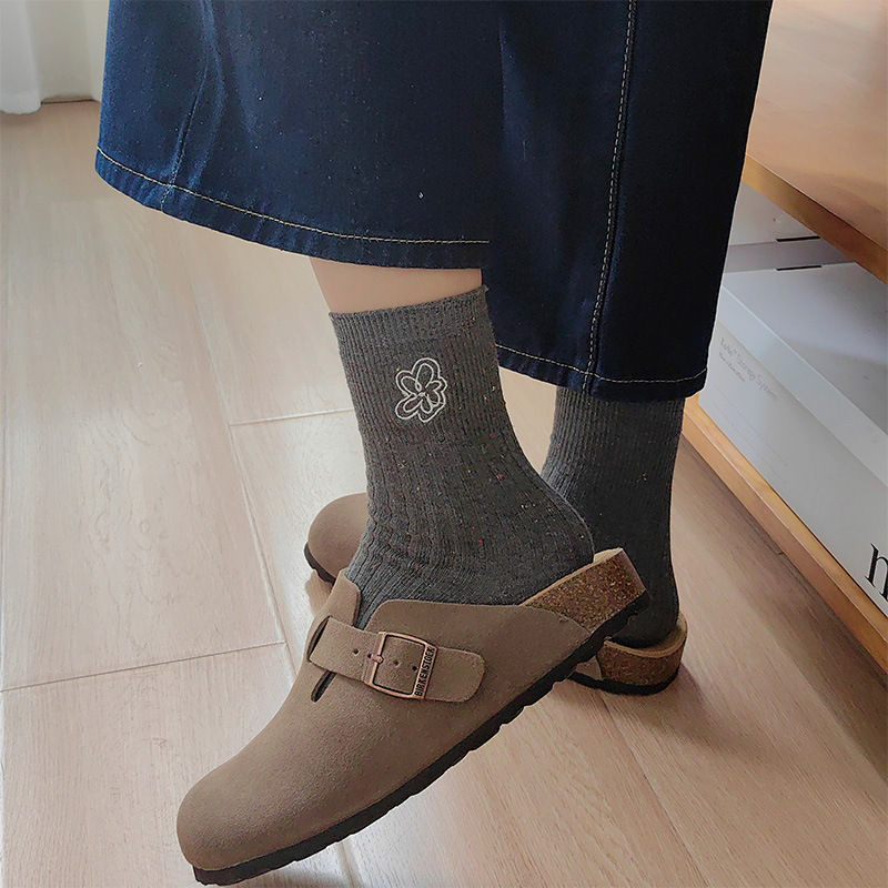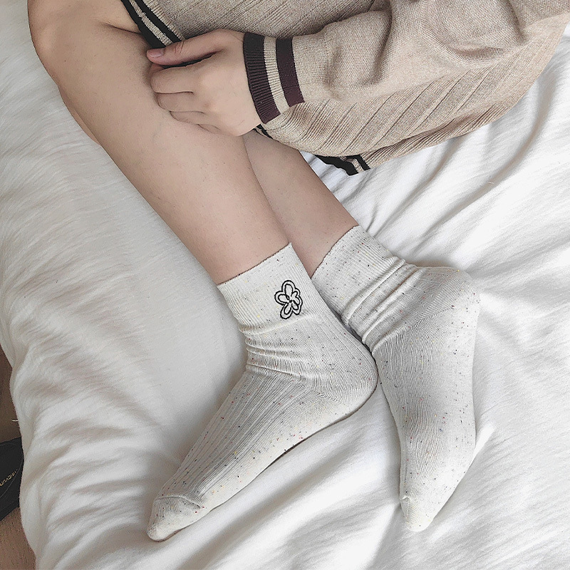 일본식 대학 스타일의 숟가락 원사 양말 여성 중거리 양말 유행 가을과 겨울 다양한 한국식 꽃 자수 학생 더미 양말스토어 가기