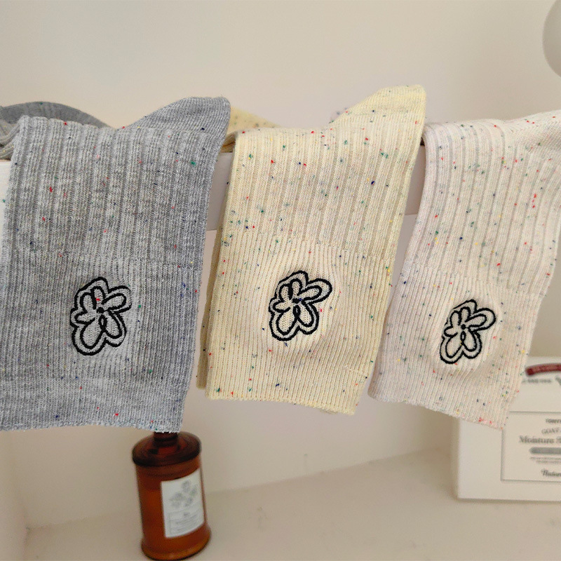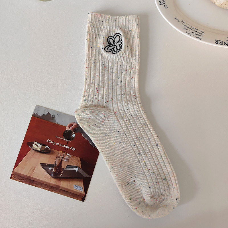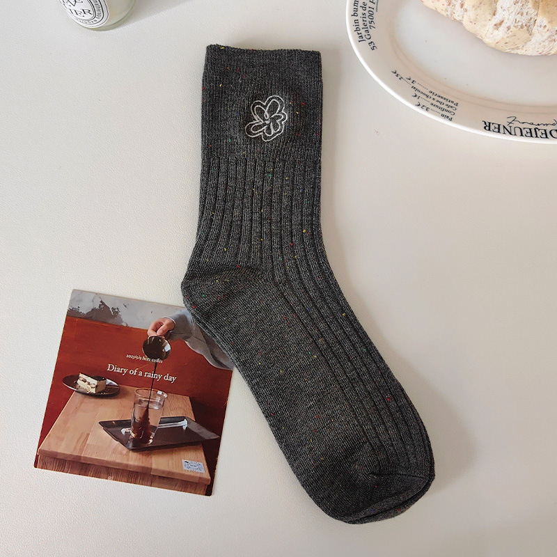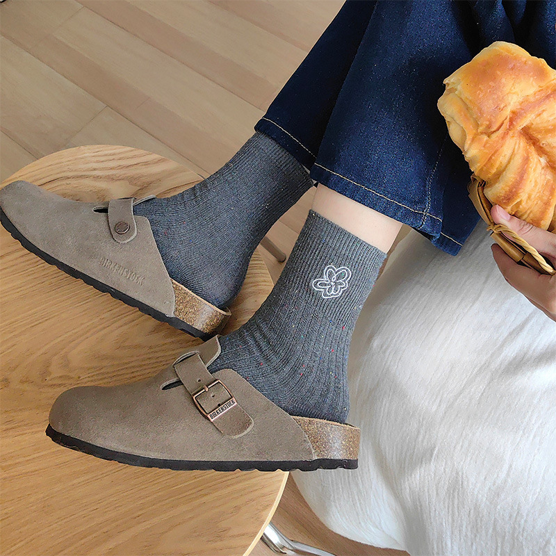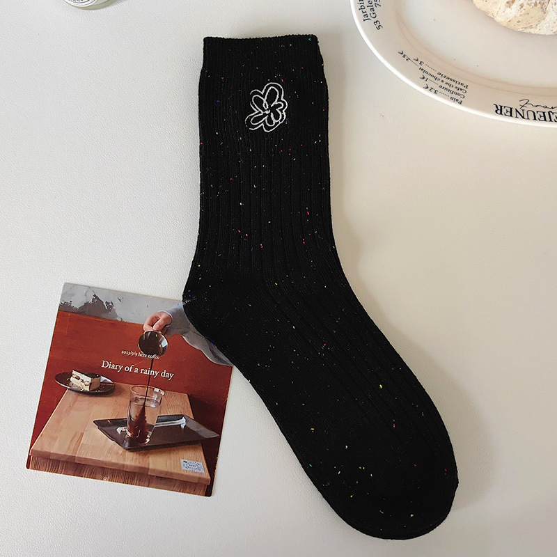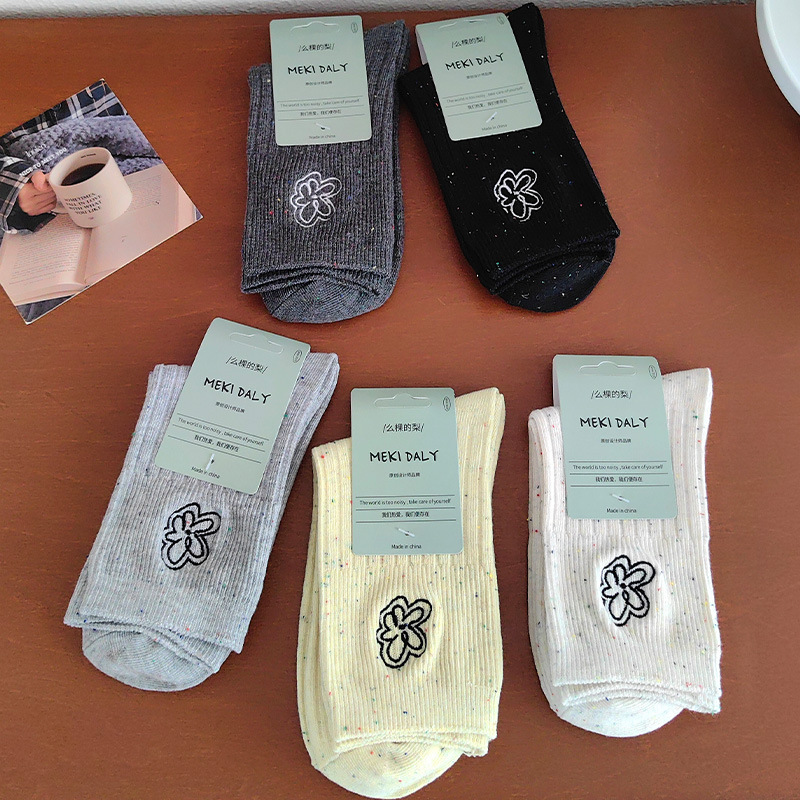 일본식 대학 스타일의 숟가락 원사 양말 여성 중거리 양말 유행 가을과 겨울 다양한 한국식 꽃 자수 학생 더미 양말