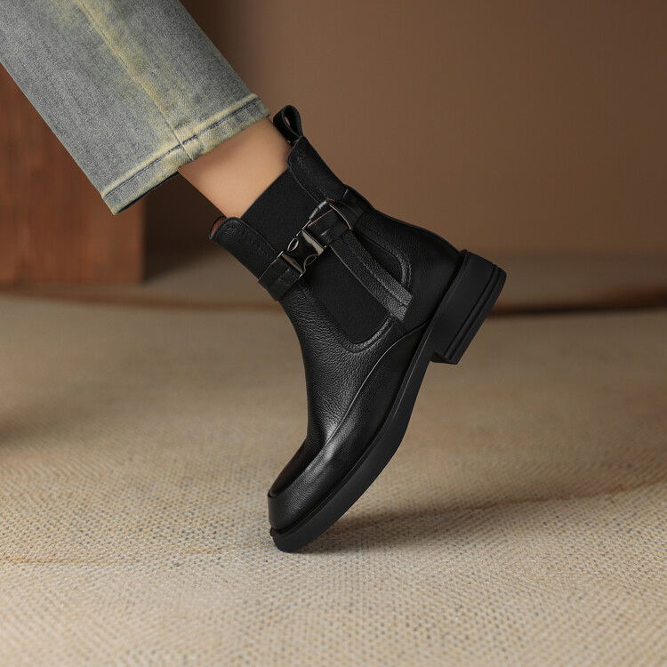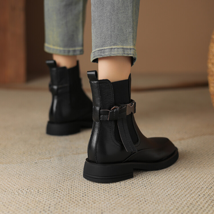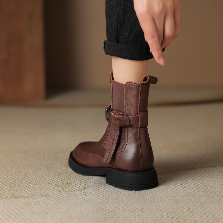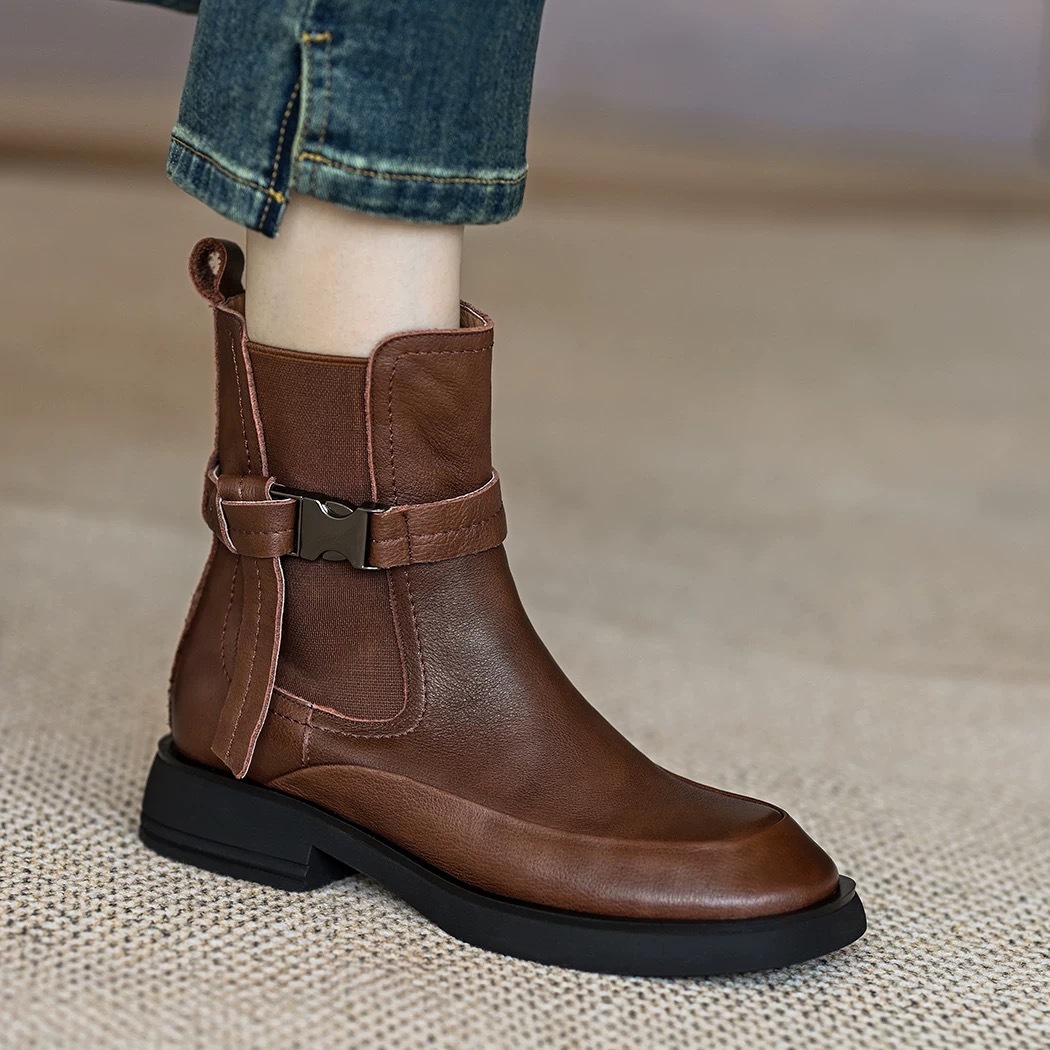 탑 레이어 Cowhide 부츠 2024 가을과 겨울 두꺼운 힐 마틴 부츠 여성 영국 스타일 패션 하이 엔드 레트로 정품 가죽 발목 부츠스토어 가기
