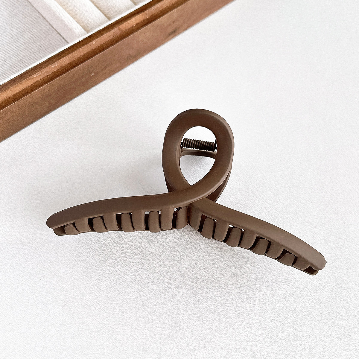 커피색 심플하고 우아한 크로스 헤어핀, 유럽 및 미국 스타일의 대형 샤크클립, 고급스러운 뒷머리 헤어핀스토어 가기