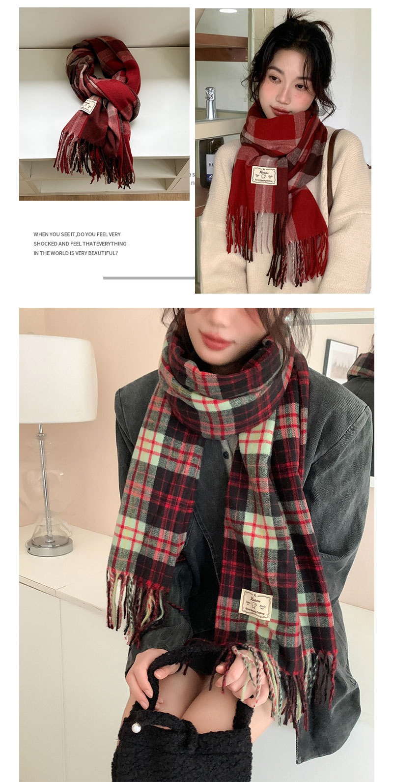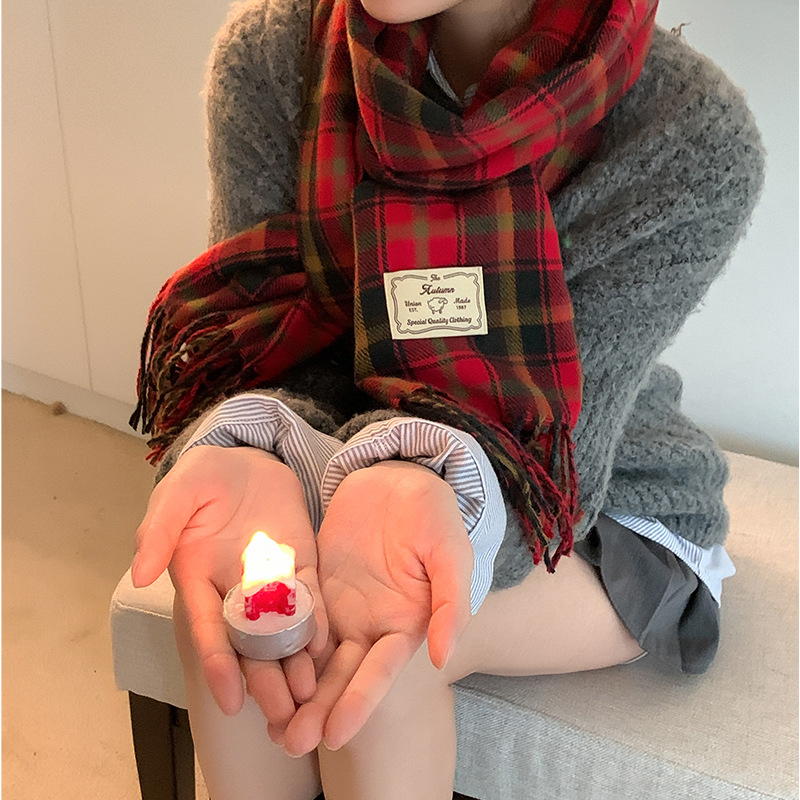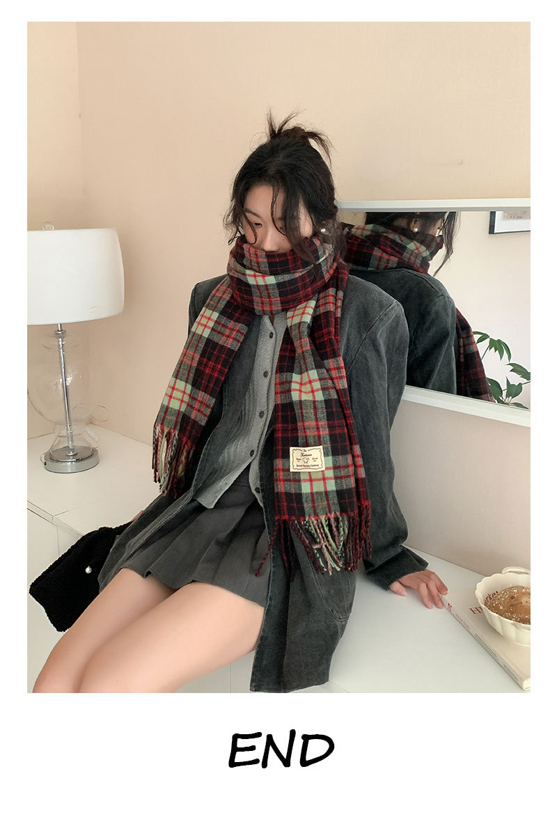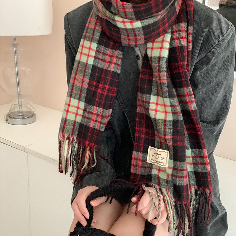 가을과 겨울 새로운 대비 컬러 격자 무늬 스카프 두꺼운 따뜻한 목도리 학생 올 매치 체크 무늬 스카프 학생 여성 겨울 패션스토어 가기