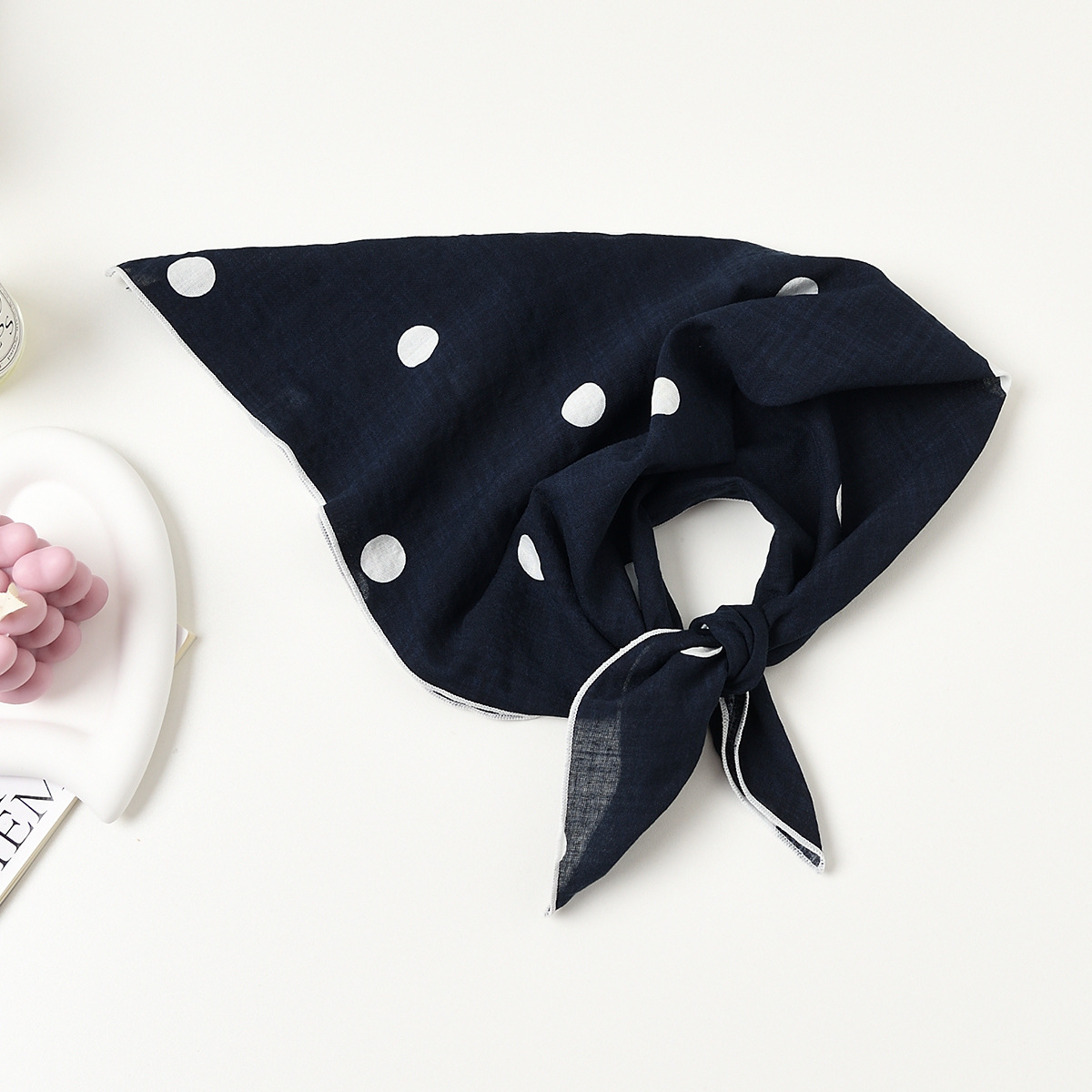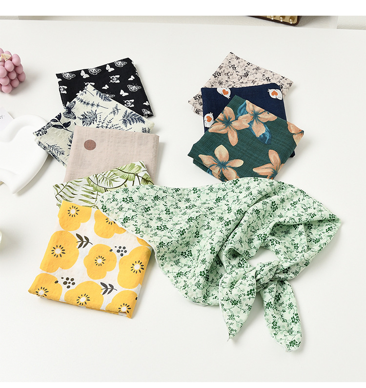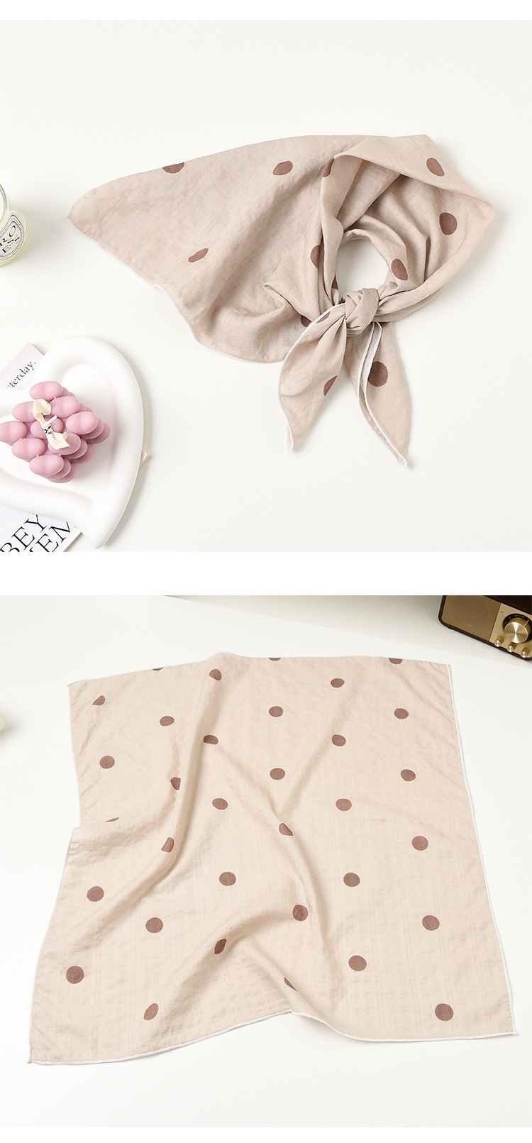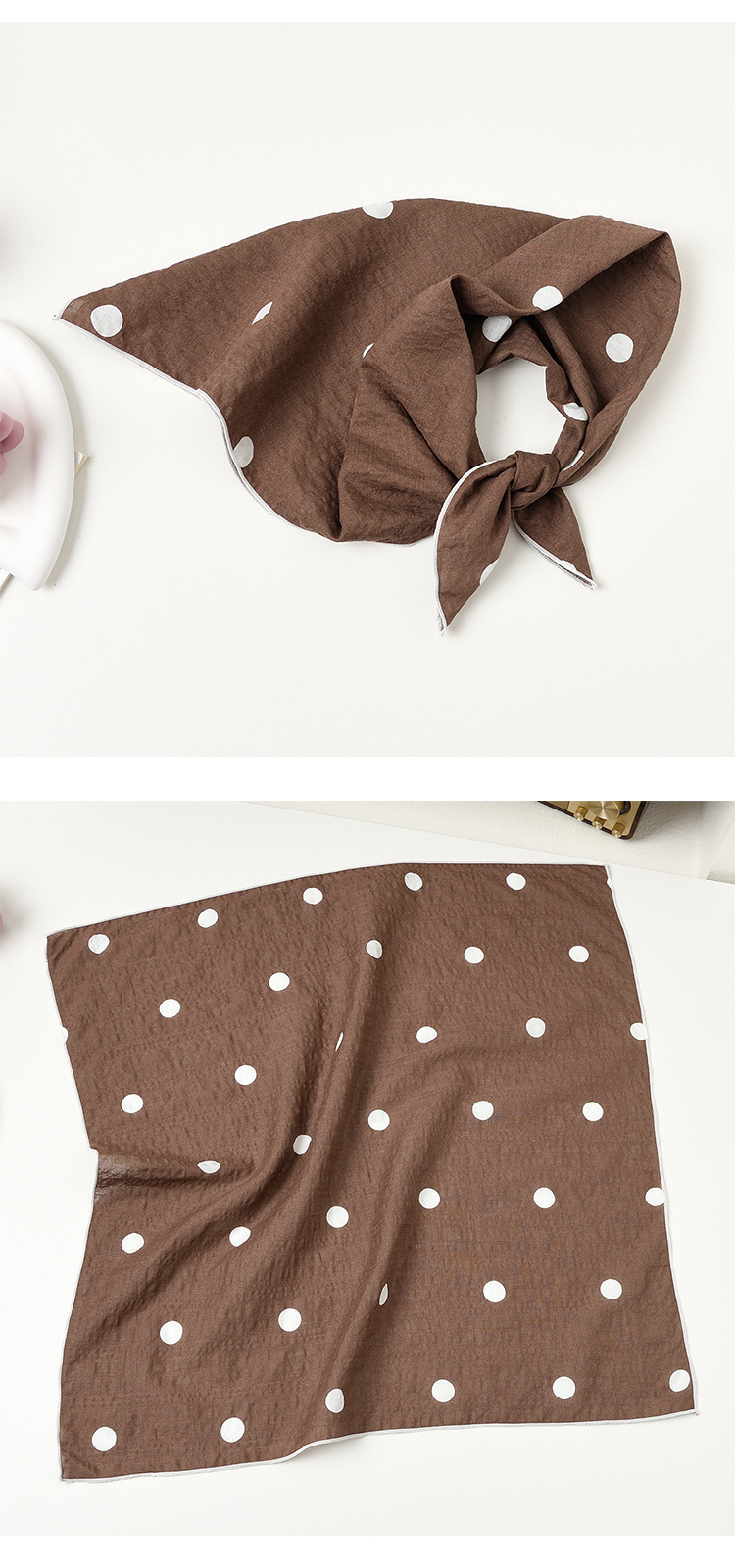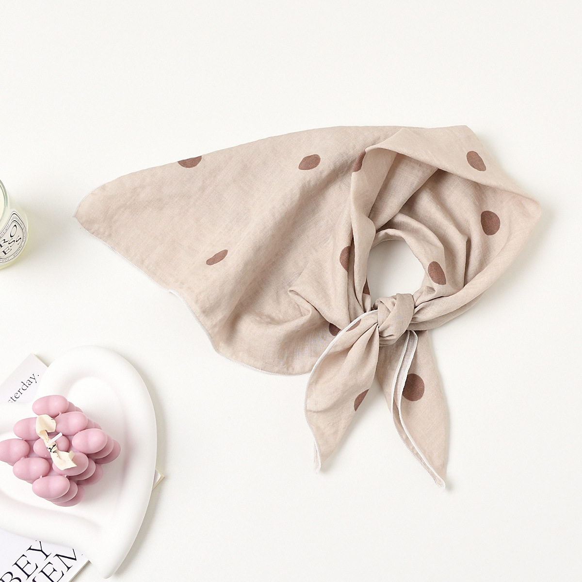 실크 스카프 폴로 도트 헤어 밴드 코튼 앤 리넨 스몰 스퀘어 스카프 여성 한국 아티스틱 코튼 올매치 패션 봄과 가을 우아한 스카프