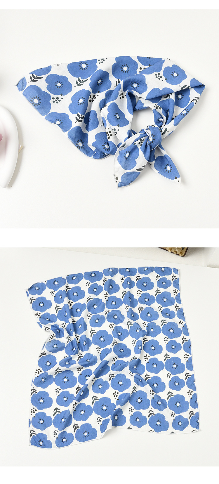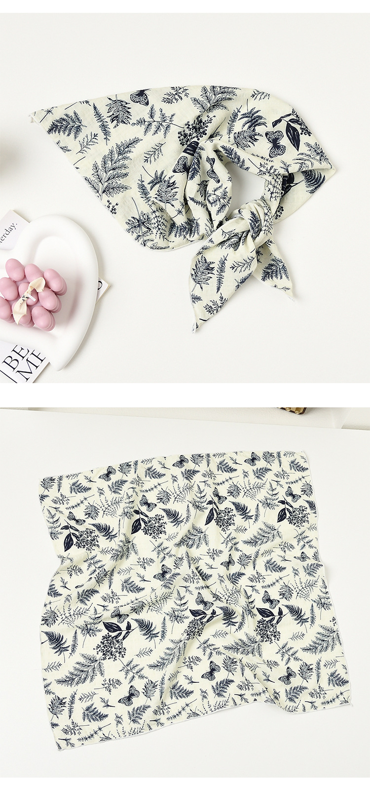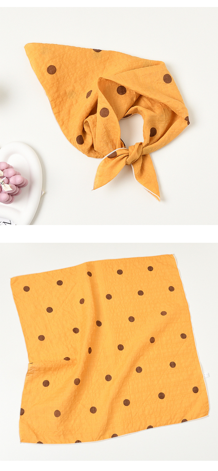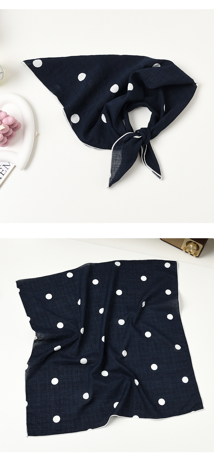 실크 스카프 폴로 도트 헤어 밴드 코튼 앤 리넨 스몰 스퀘어 스카프 여성 한국 아티스틱 코튼 올매치 패션 봄과 가을 우아한 스카프