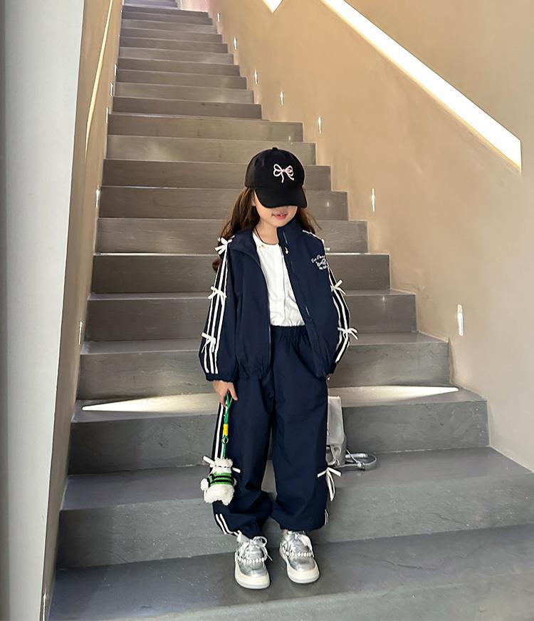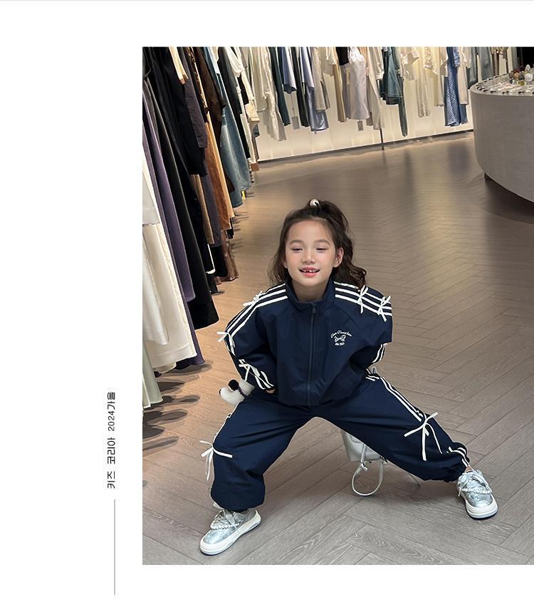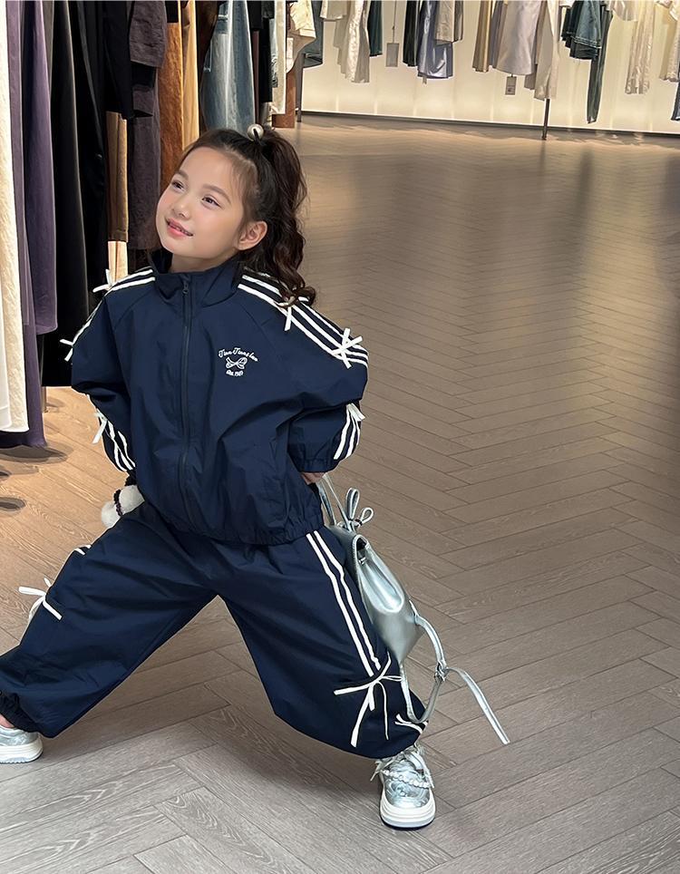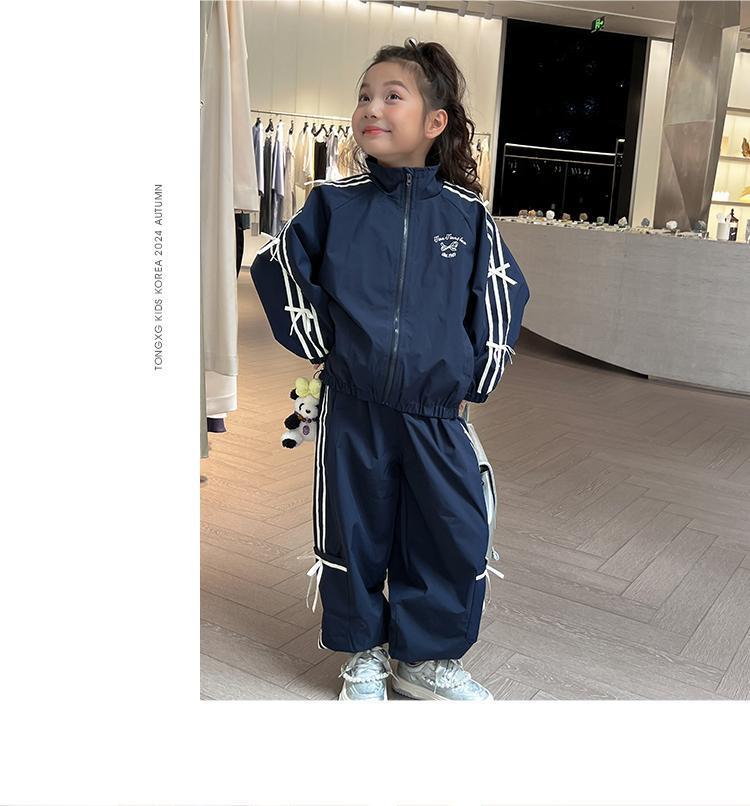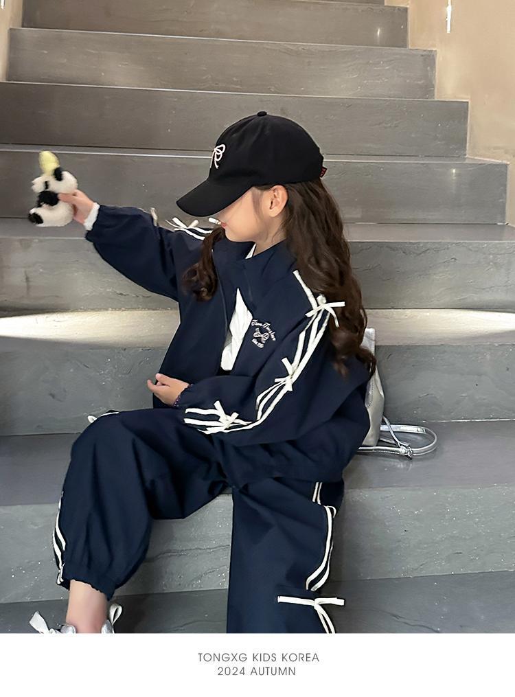 소녀 한국 스타일 캐주얼 세트 중 · 대형 어린이 봄 · 가을 새 도착 카디건 탑 바지 보우 스트라이프 투피스 트렌디 세트스토어 가기