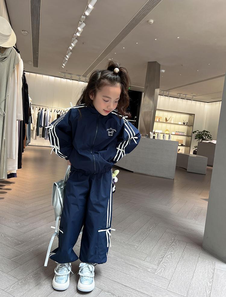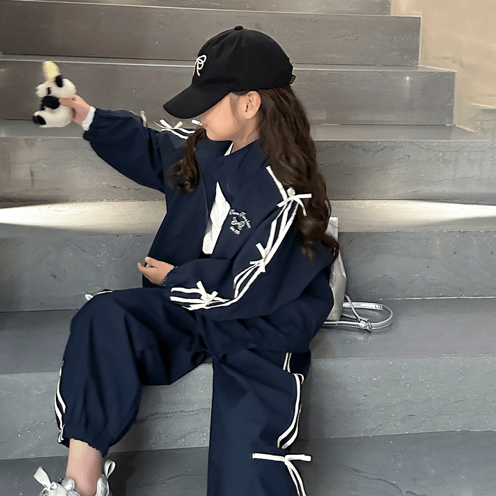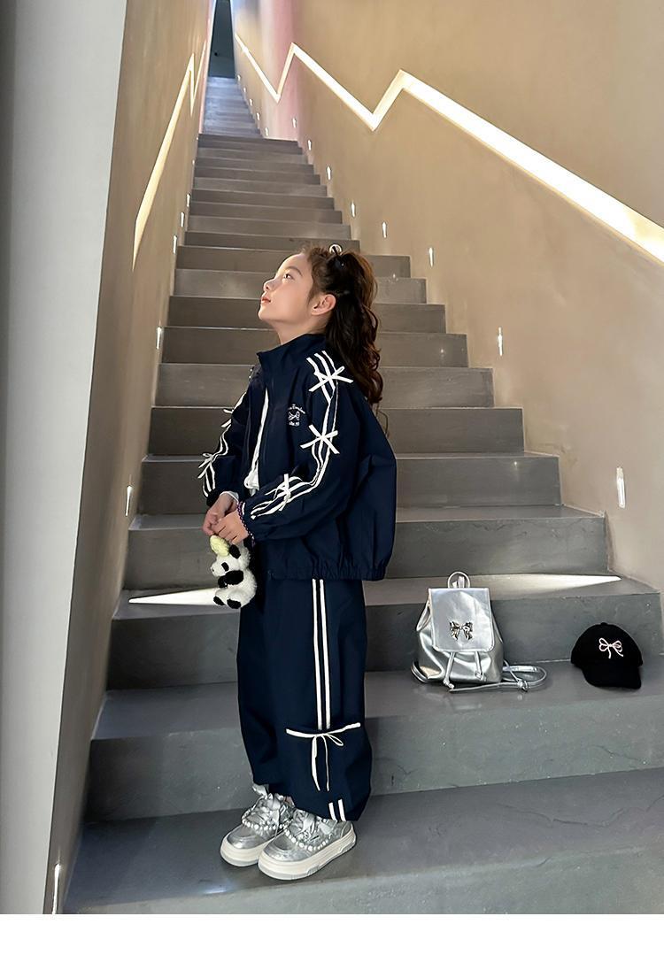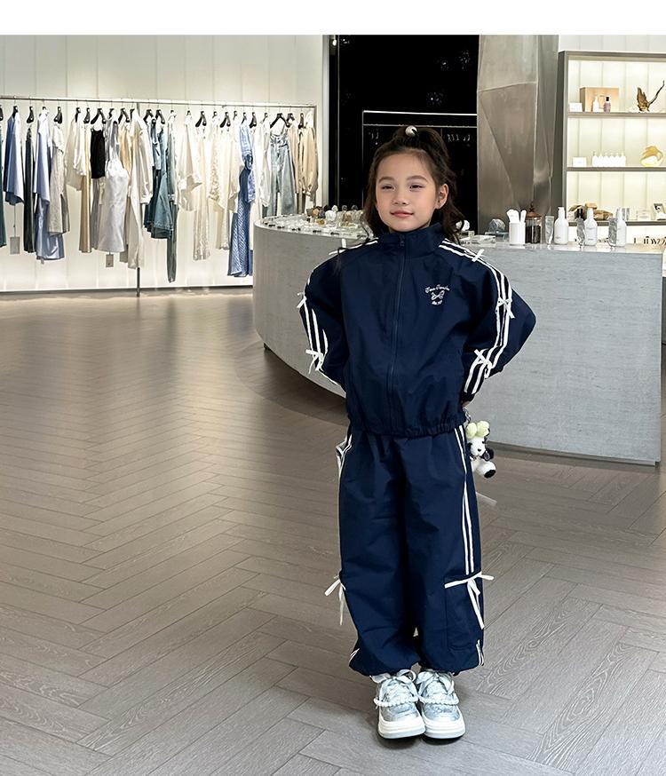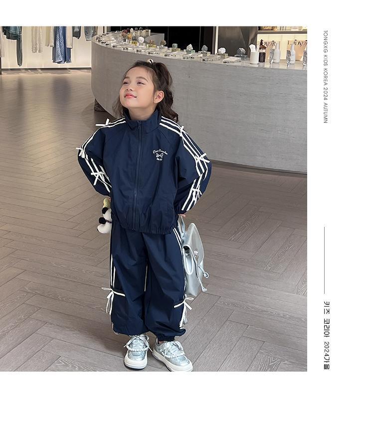 소녀 한국 스타일 캐주얼 세트 중 · 대형 어린이 봄 · 가을 새 도착 카디건 탑 바지 보우 스트라이프 투피스 트렌디 세트스토어 가기