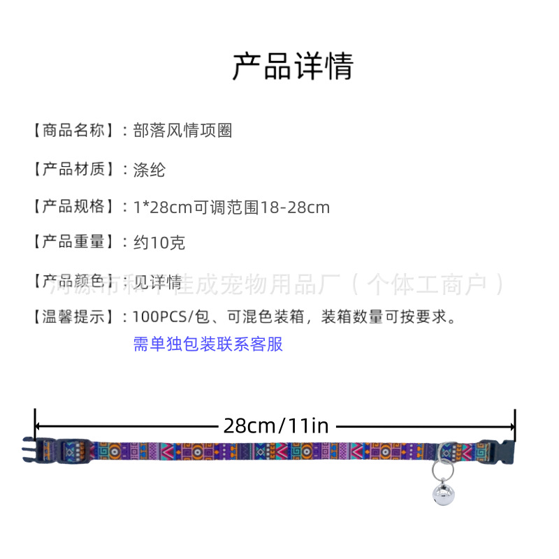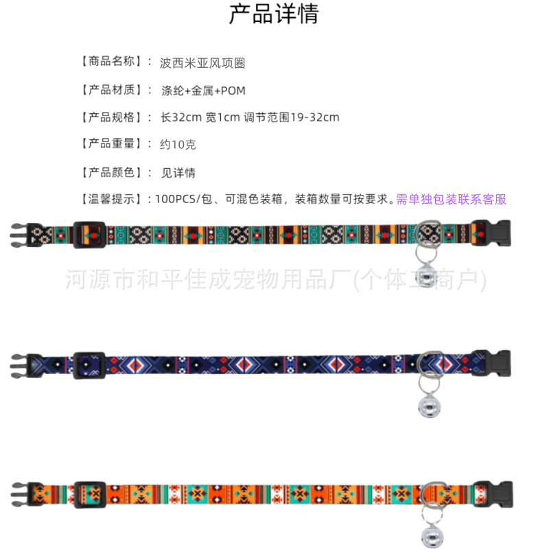 Jiacheng Cat Collar Bohemian 스타일 애완 동물 칼라 폴리 에스터 소재 변형 불가능한 고양이 강아지 목걸이