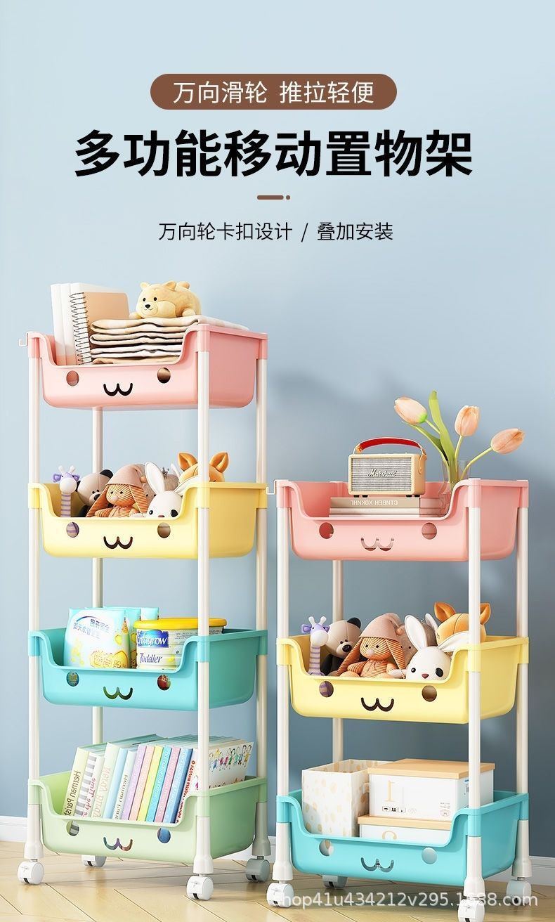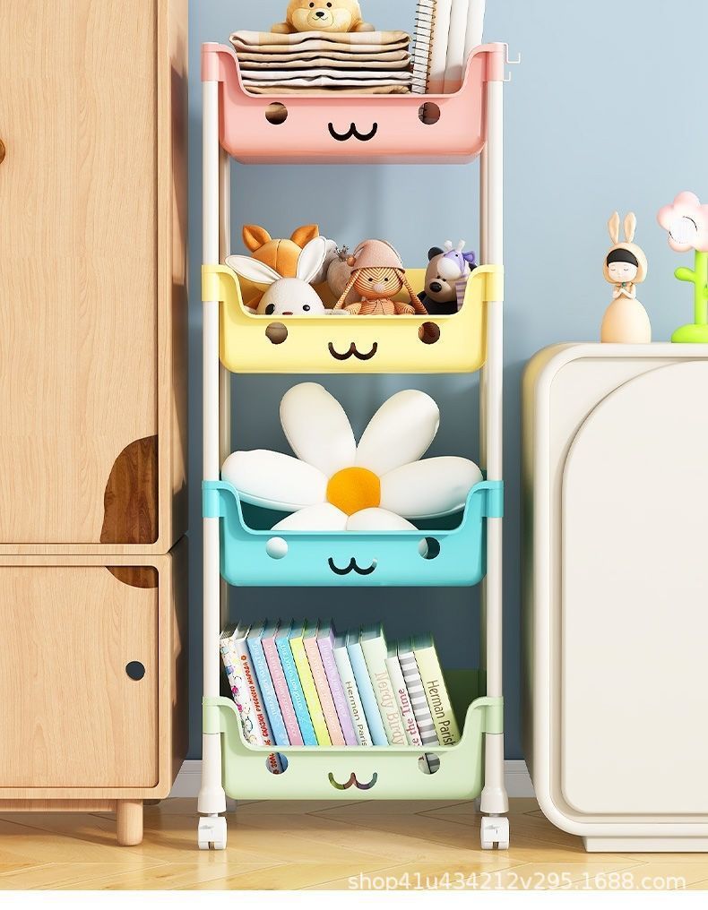 Macaron 다층 스토리지 랙 트롤리 이동식 스낵 장난감 스토리지 랙 어린이 바닥 책장 보관 랙