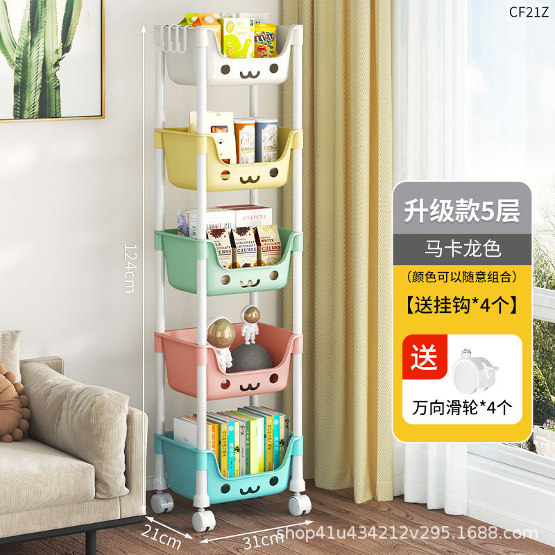 Macaron 다층 스토리지 랙 트롤리 이동식 스낵 장난감 스토리지 랙 어린이 바닥 책장 보관 랙스토어 가기