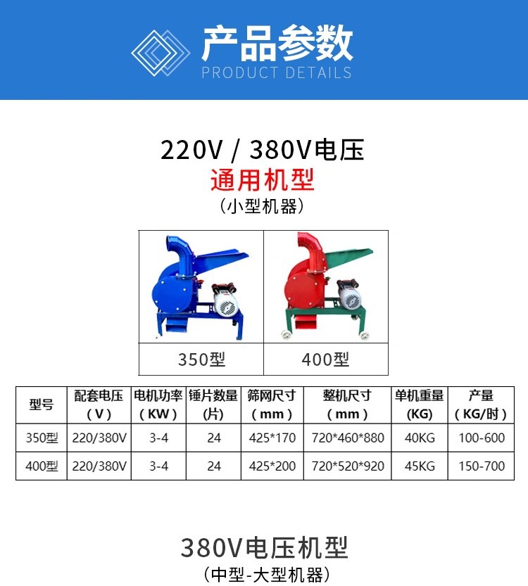 가정용 작은 2 상 보편적 인 분쇄기 옥수수 cob 짚 번식 무스 밀가루 연삭 기계 해머 유형 연삭 분말 표면