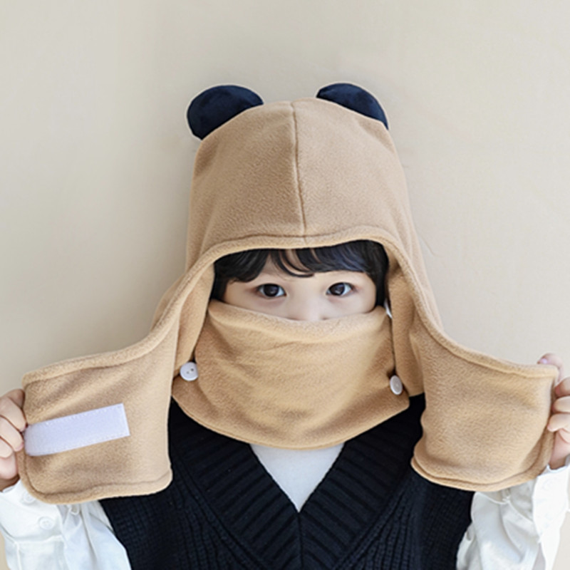 아기 모자 귀여운 슈퍼 귀여운 겨울 어린이 스카프 올인원 모자 따뜻한 방풍 소년 소녀 어린이 보호 풀오버 캡에 직면스토어 가기