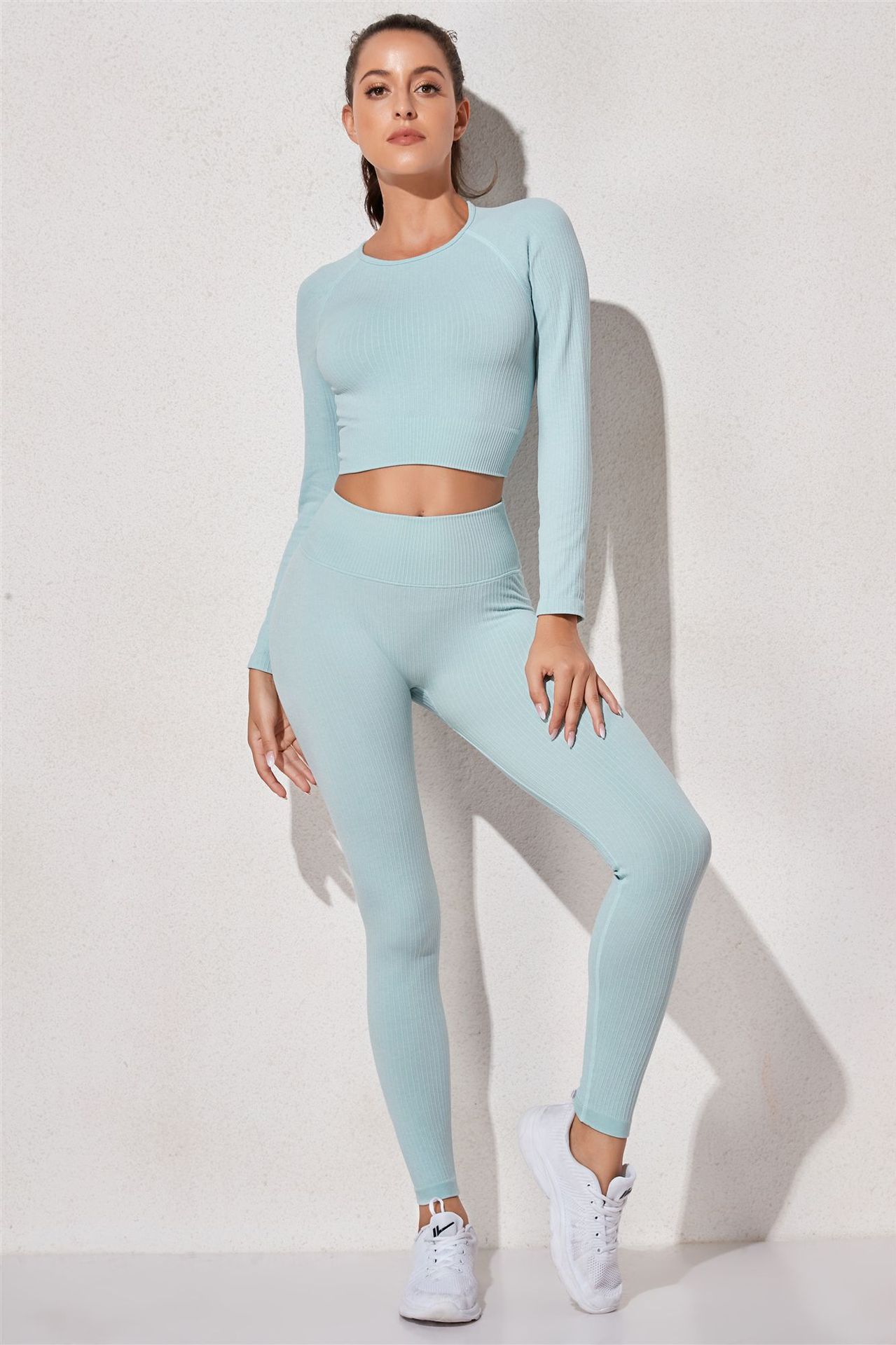 유럽과 미국의 국경 간 폭발 원활한 스레드 요가 의류 세트 스포츠 속옷 브래지어 바지 높은 허리 스웨트 위킹 여성
