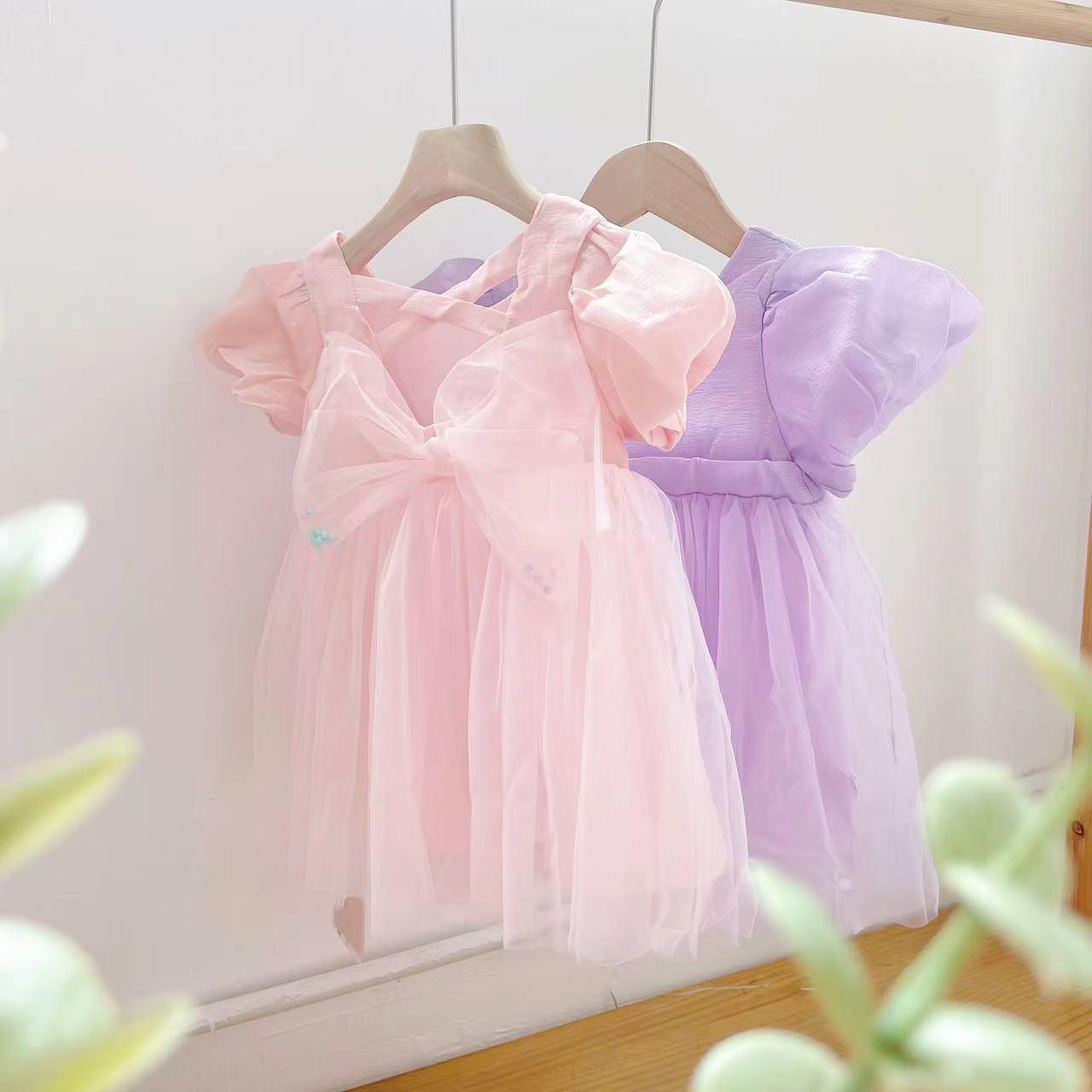 XXNL10006 아동복 2023 여름 신작 한국어 버전 단색 리본 거즈 스커트 어린이용스토어 가기