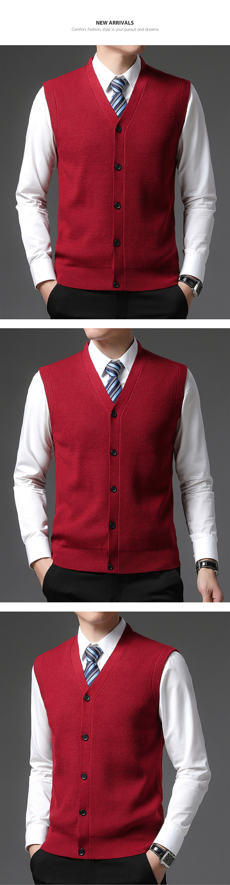 가을과 겨울 중년 및 노인 남성 조끼 두꺼운 따뜻한 아빠의 허리 코트 솔리드 컬러 카디건 조끼 스웨터 남성복