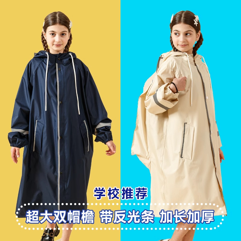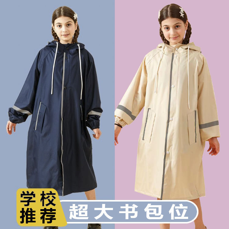 대학생 비옷 남자 · 여아용 더블모자 스쿨백 비트 전신 긴 보호 판초 비바람 보호스토어 가기
