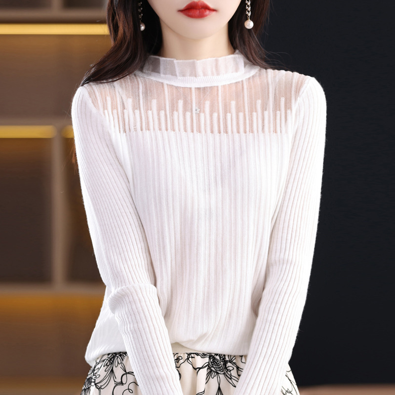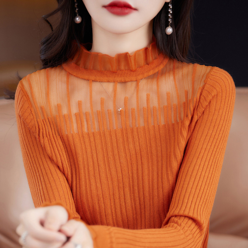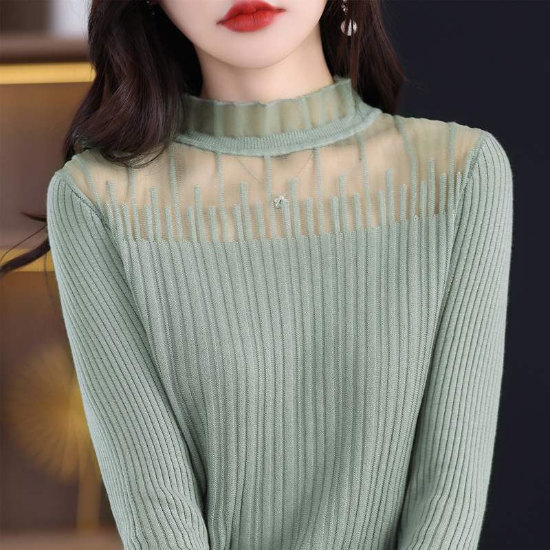 레이스베이스 셔츠 프렌치 스타일 세련된 웨스턴 스타일 작은 탑 여성의 내부 하프 터틀넥 스웨터 긴 소매 새 스웨터