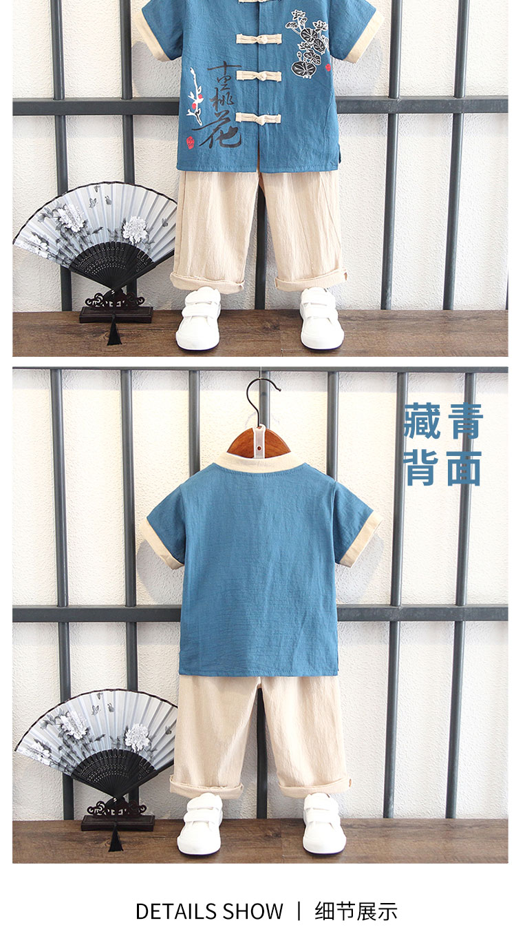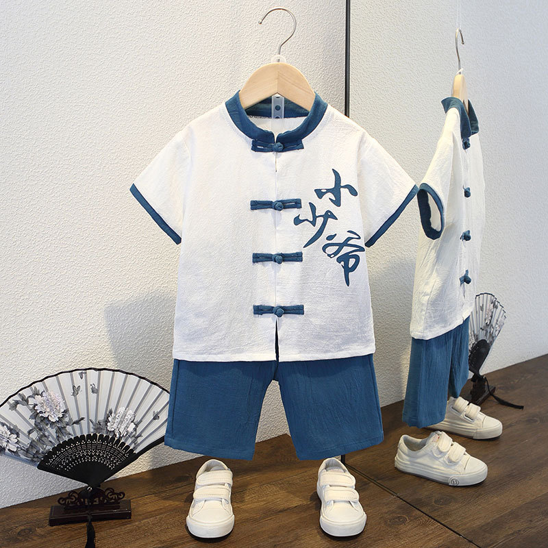 2024 소년 한푸 여름 세트 레트로 탕 세트 여름 골동품 남성 어린이 면화 얇은 대마 중국 Heng Ming스토어 가기